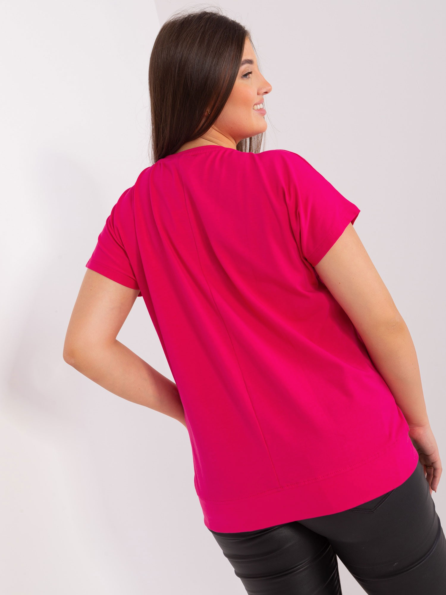 Fuksjowa bluzka plus size z printem .