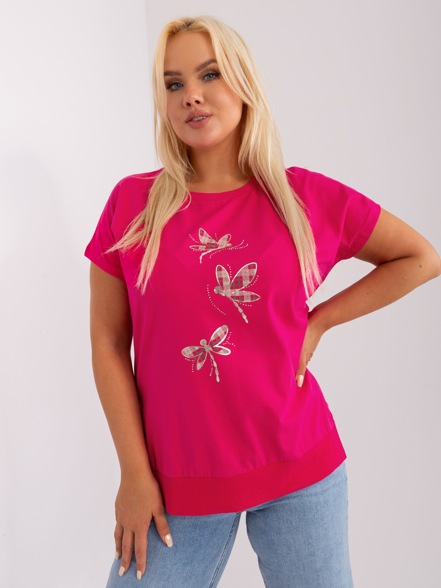 Fuksjowa bluzka plus size z okrągłym dekoltem .