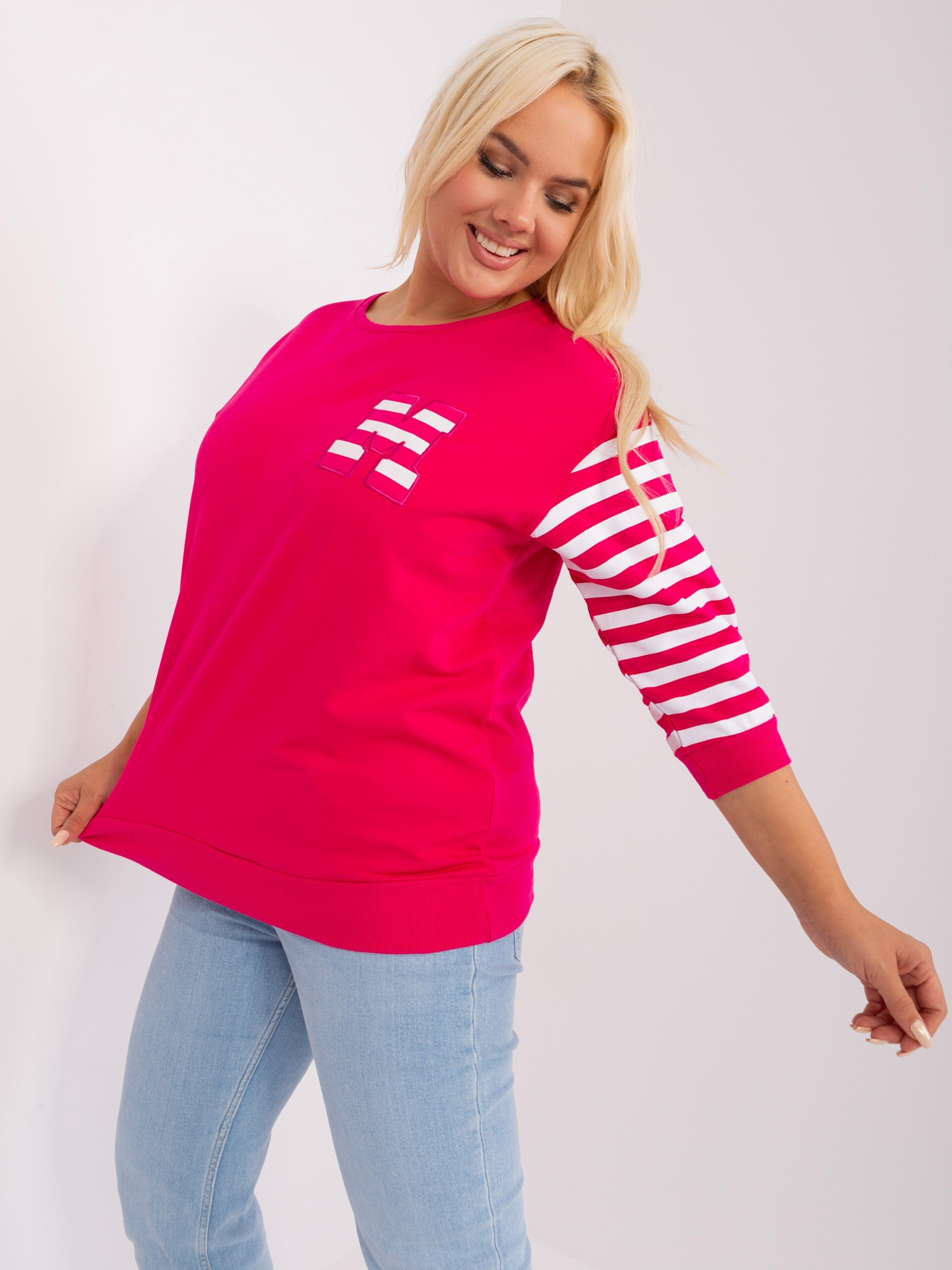 Wymiary bluzki w rozmiarze one size mierzone na płasko: szerokość pod pachami – 56 cm, długość całkowita – 66 cm, długość rękawa – 41 cm