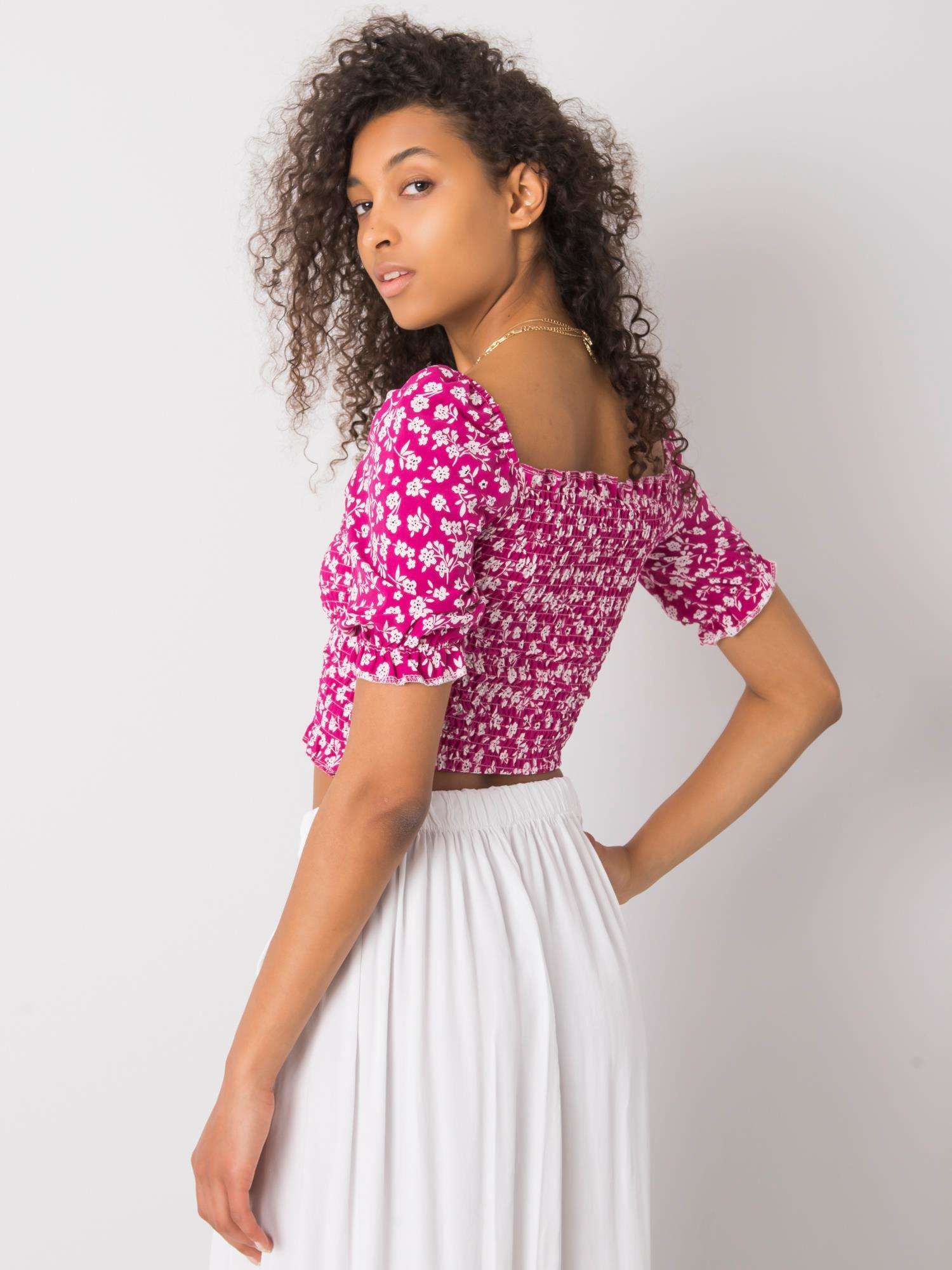 RUE PARIS Fuksjowa krótka bluzka we wzory.