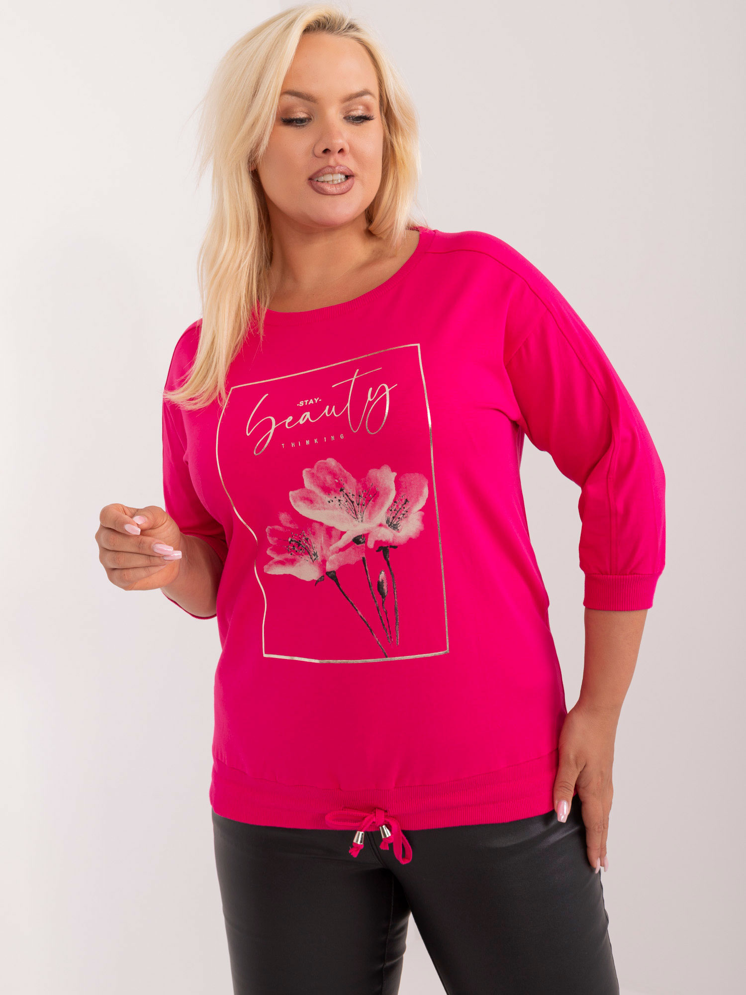 Wymiary bluzki w rozmiarze one size mierzone na płasko: szerokość pod pachami – 56 cm, długość całkowita – 66 cm,, długość rękawa – 44 cm.