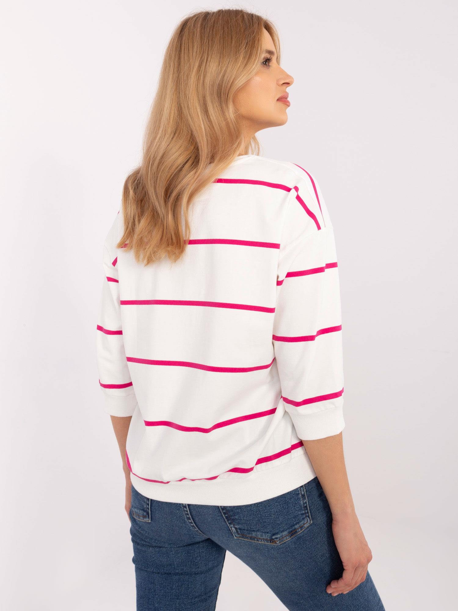 Wymiary bluzki w rozmiarze one size mierzone na płasko: szerokość pod pachami – 58 cm, długość rękawa – 34 cm (od szwu), długość całkowita – 62 cm, szerokość w biodrach – 48 cm (na płasko).