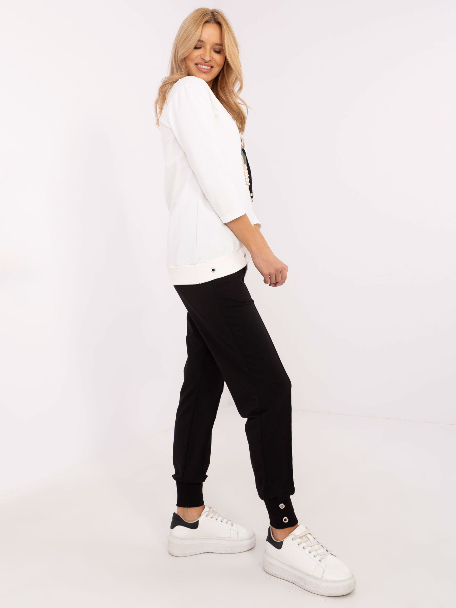 Wymiary bluzki w rozmiarze one size mierzone na płasko: szerokość pod pachami – 61 cm, długość całkowita – 67 cm, długość rękawa – 61 cm