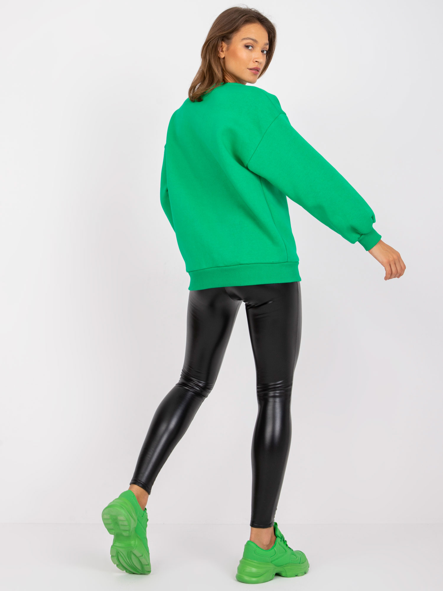 Modelka ma na sobie rozmiar one size. Wymiary modelki: wzrost 176 cm, biust 85 cm, talia 64 cm, biodra 92 cm.