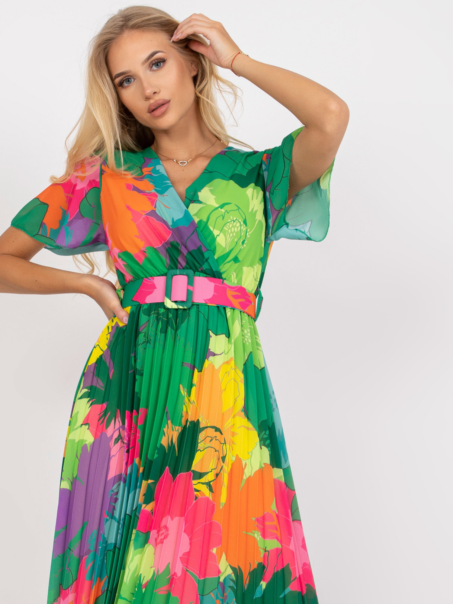 Modelka ma na sobie rozmiar one size. Wymiary modelki: wzrost 176 cm, biust 85 cm, talia 64 cm, biodra 92 cm.