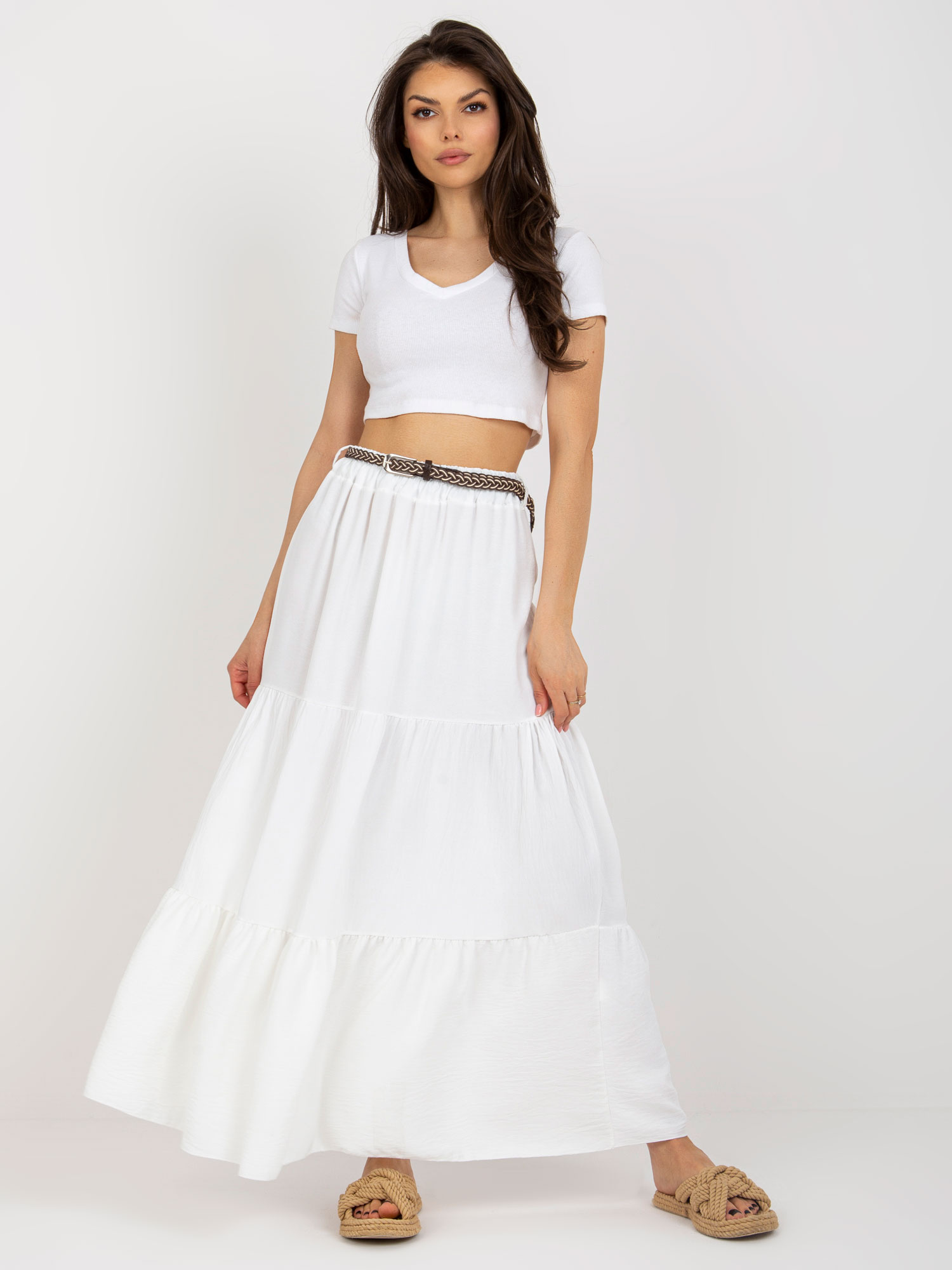 Modelka ma na sobie rozmiar XL. Wymiary modelki: wzrost 172 cm, biust 103 cm, talia 73 cm, biodra 103 cm.