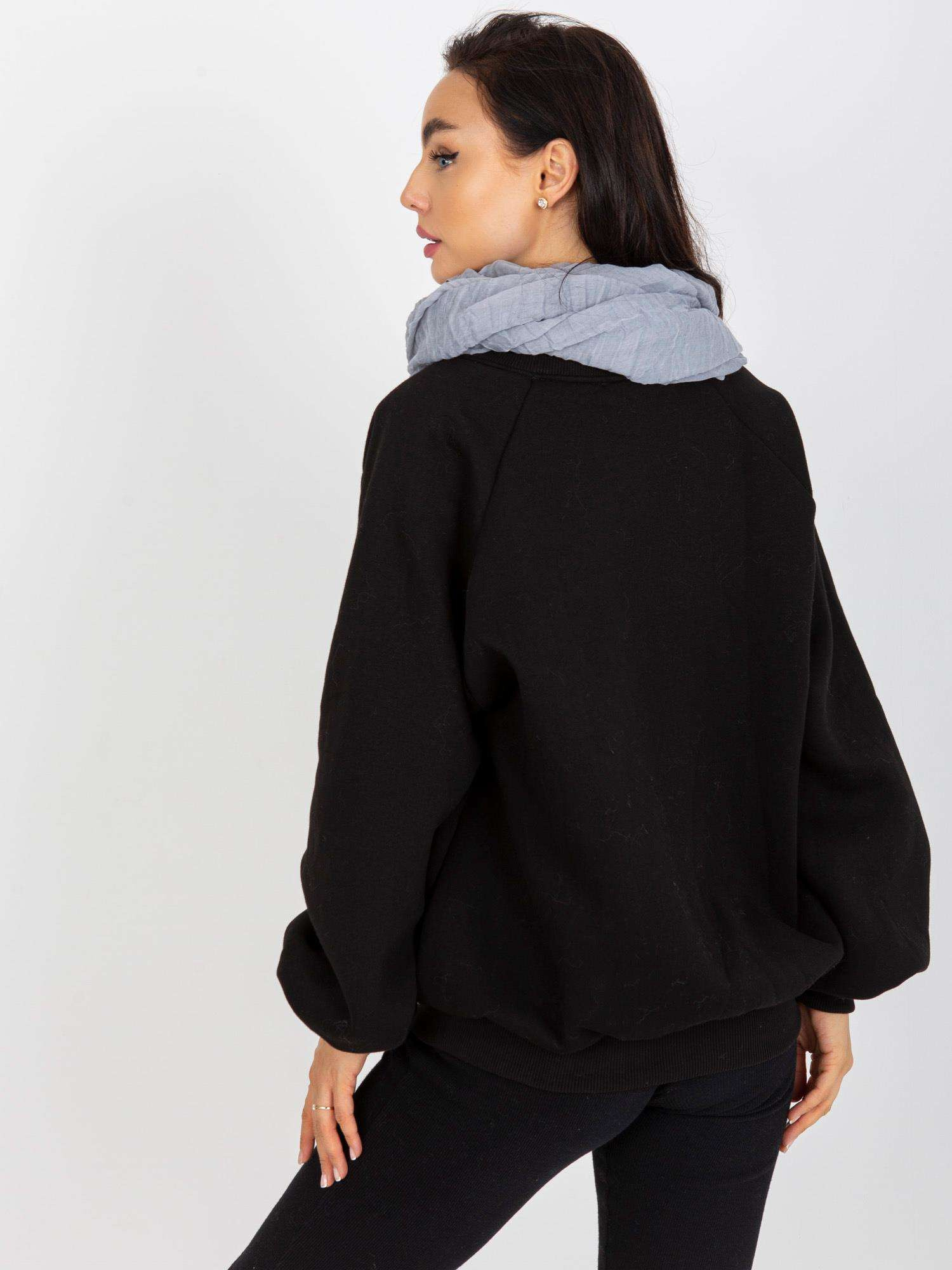 Wymiary bluzy w rozmiarze one size mierzone na płasko: szerokość pod pachami – 58 cm, długość rękawa – 62 cm, długość całkowita – 65 cm.