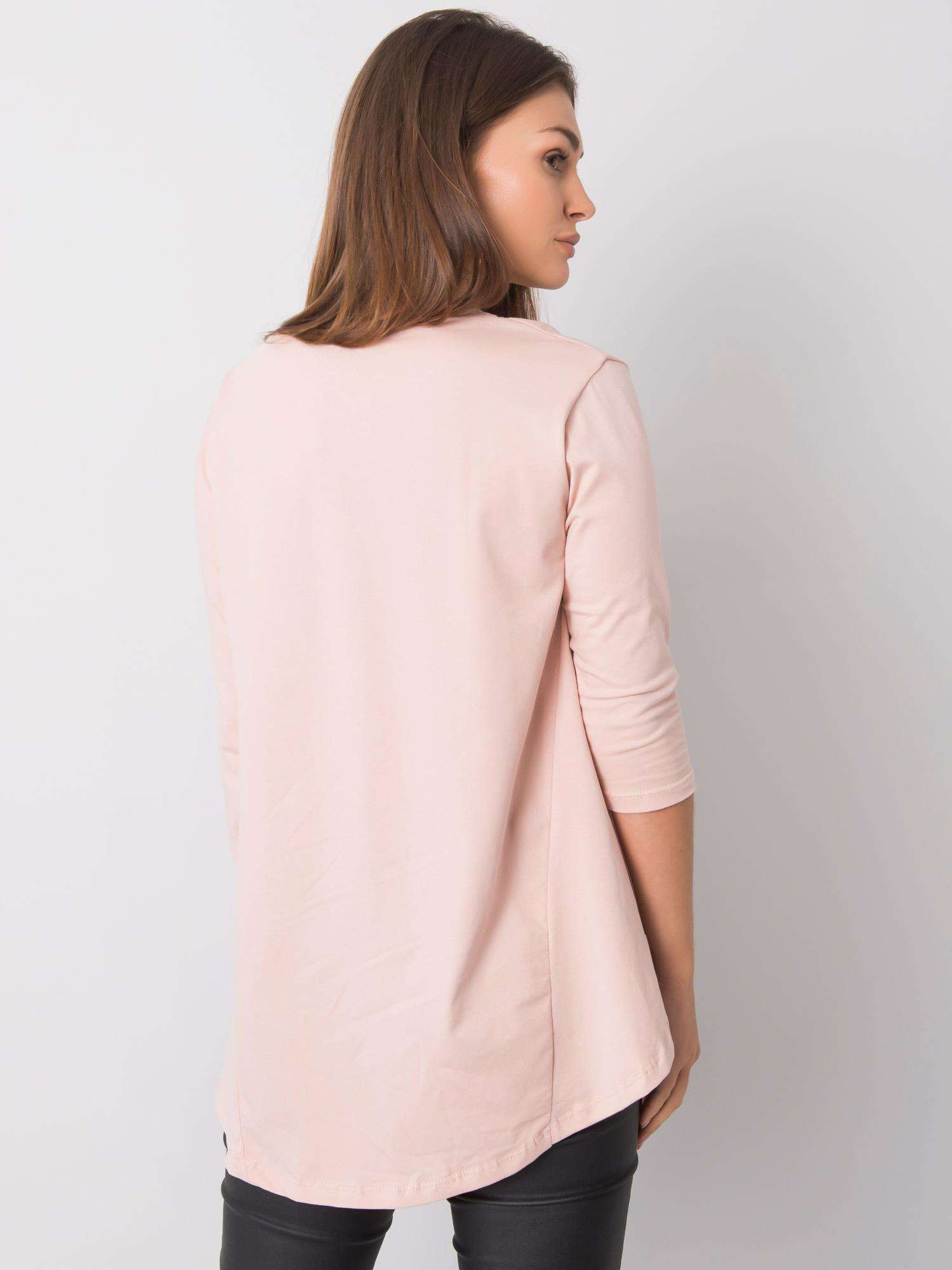 Jasnoróżowa bluzka z rękawem 3/4.
