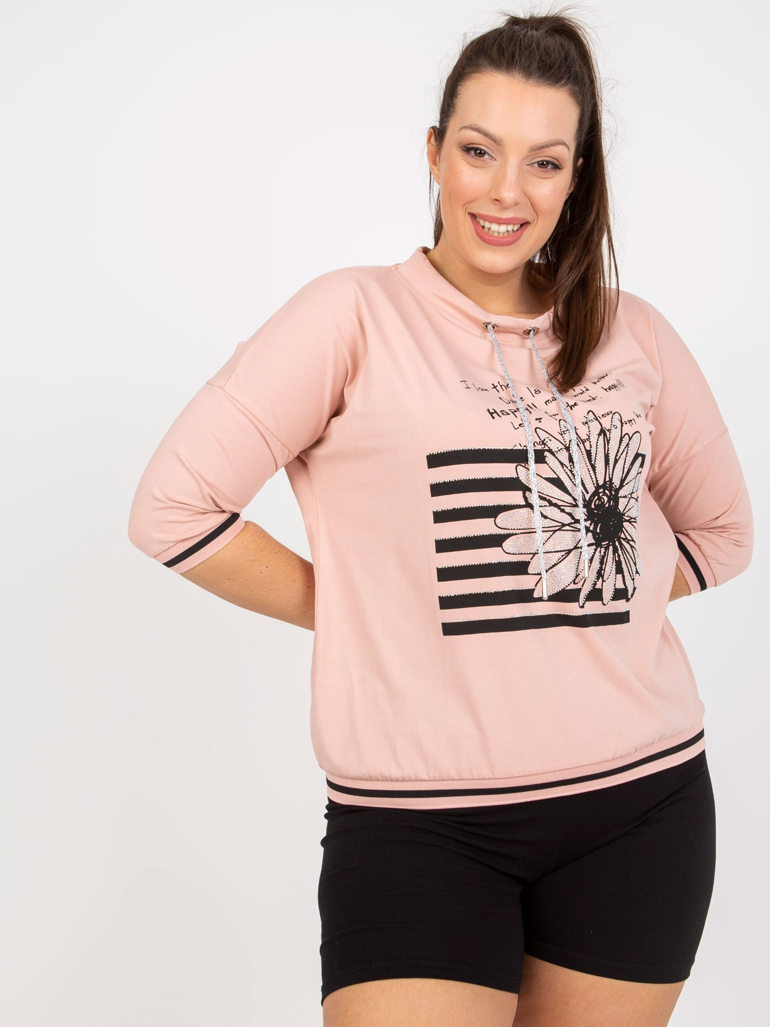 Wymiary bluzki w rozmiarze one size mierzone na płasko: szerokość pod pachami – 63 cm, długość rękawa – 40 cm, długość całkowita – 62 cm.