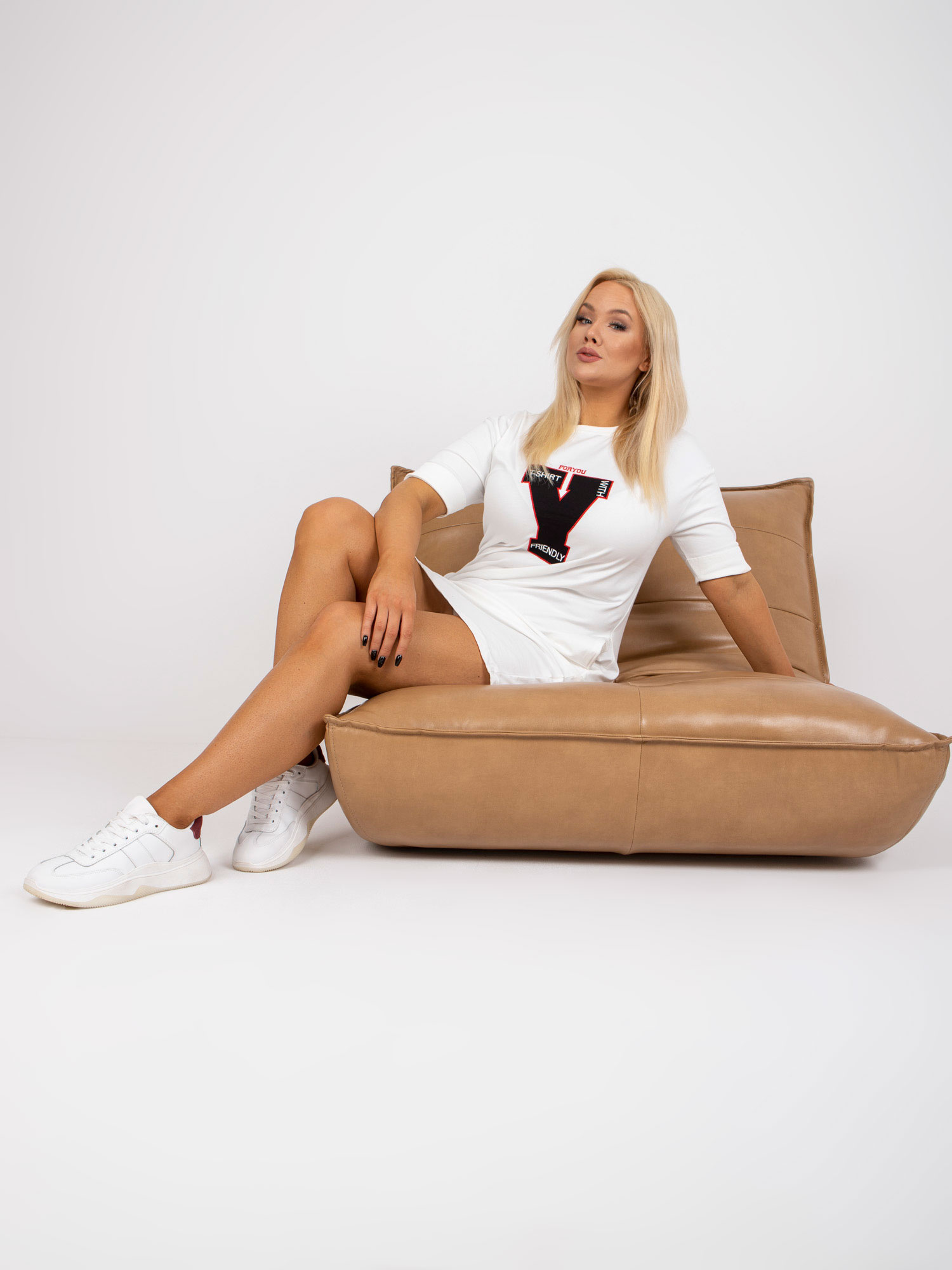Modelka ma na sobie rozmiar one size. Wymiary modelki: wzrost 176 cm, biust 85 cm, talia 64 cm, biodra 92 cm.