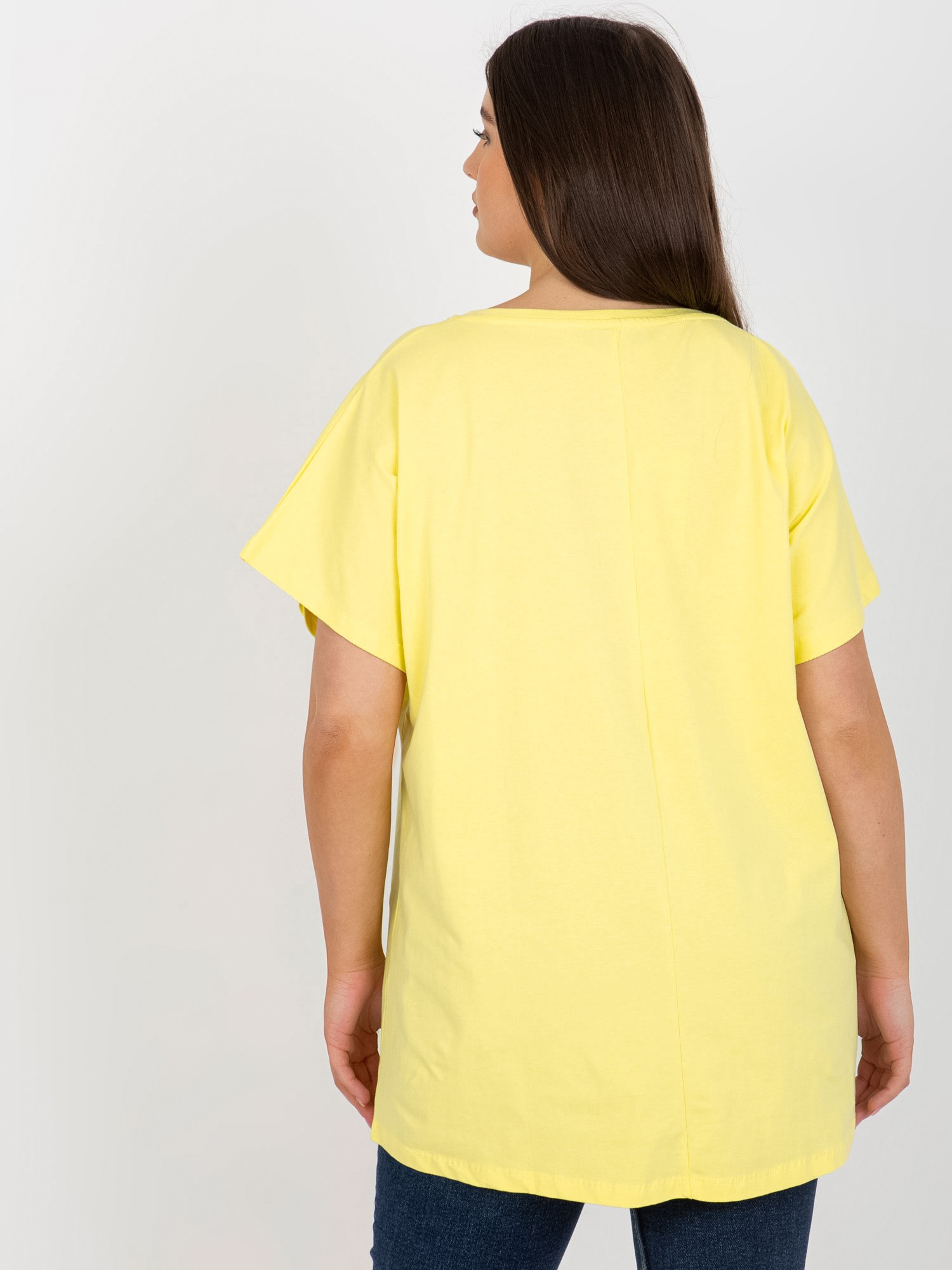 Wymiary t-shirtu w rozmiarze one size mierzone na płasko: szerokość pod pachami – 62 cm, długość całkowita – 77 cm.