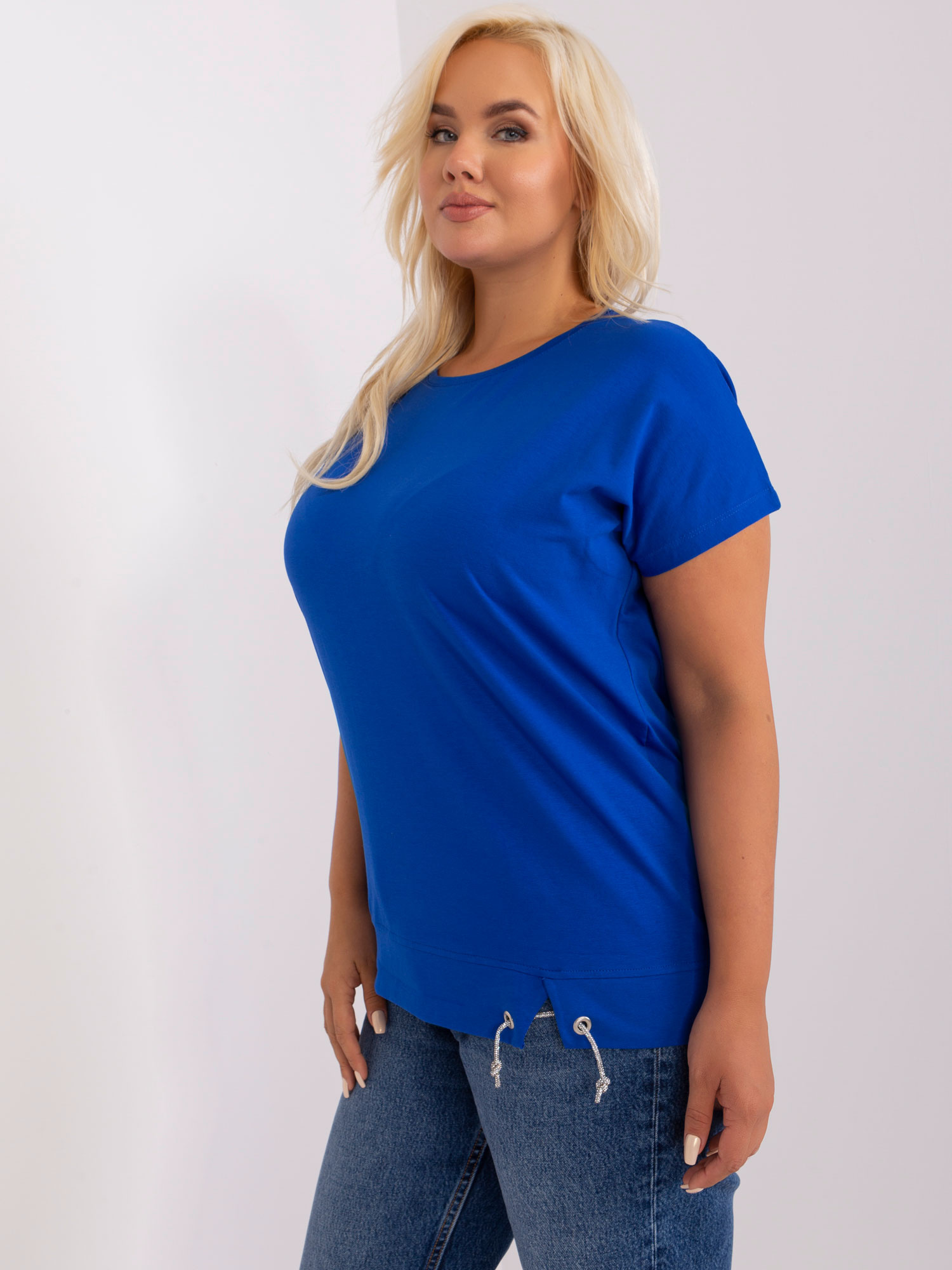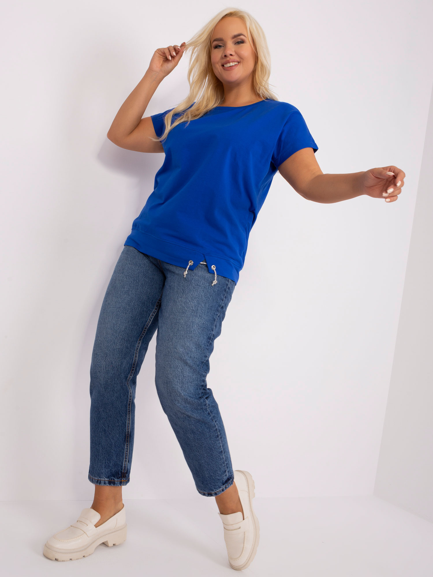 Kobaltowa bluzka plus size z krótkim rękawem .