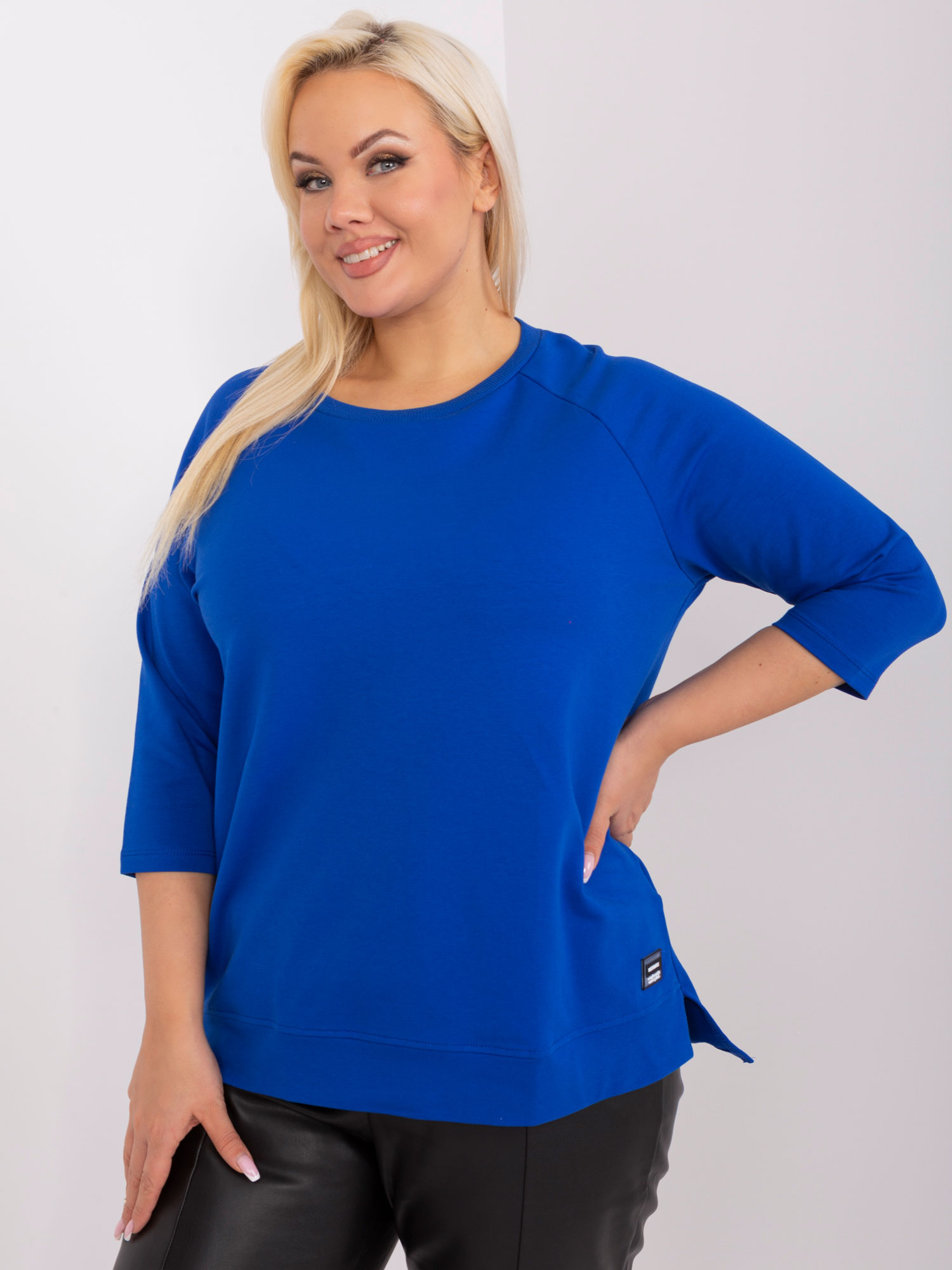 Kobaltowa dłuższa bluzka plus size z bawełny .