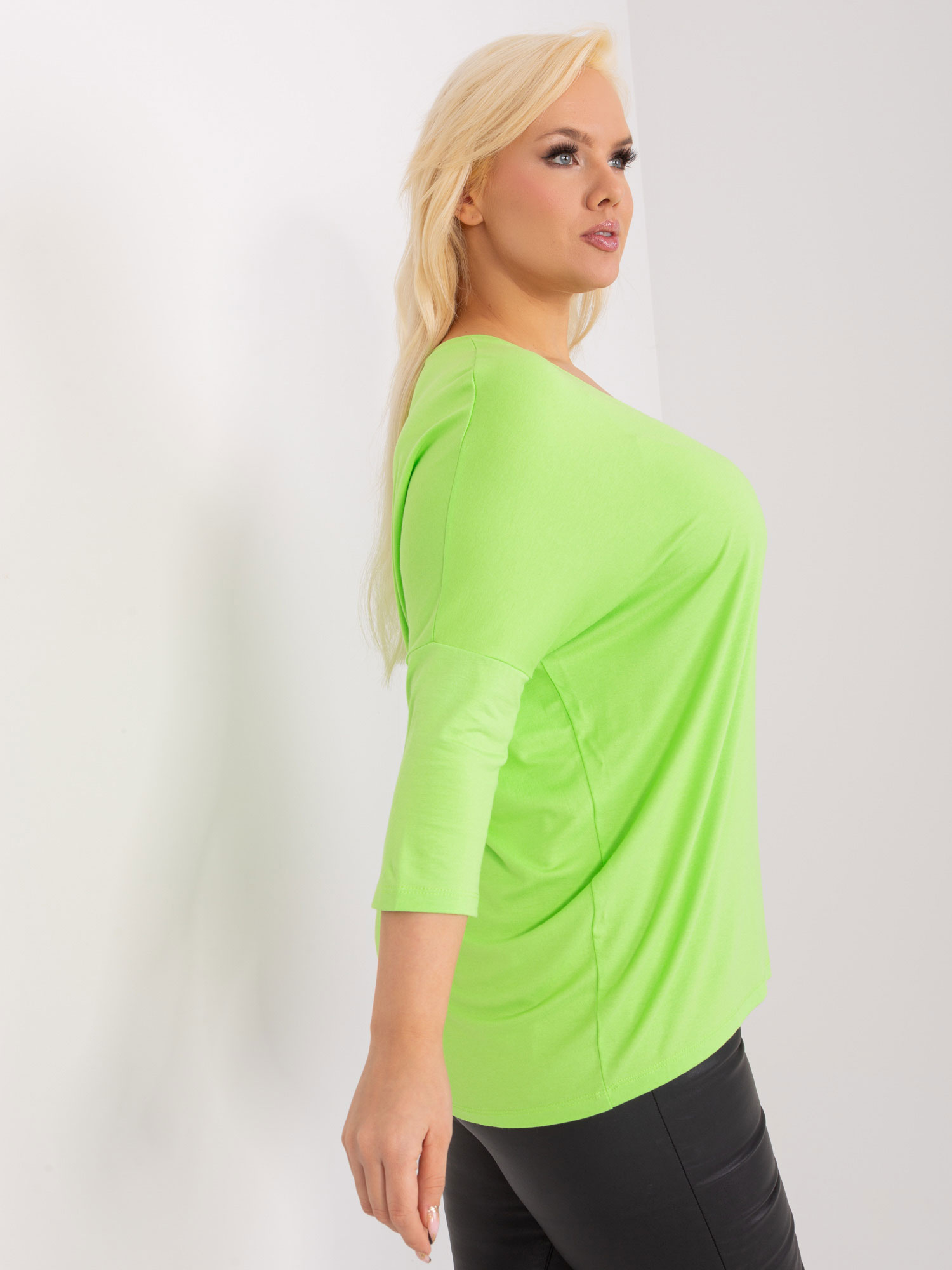 Wymiary bluzki w rozmiarze one size mierzone na płasko: szerokość pod pachami – 74 cm, długość rękawa – 45 cm, długość całkowita – 73 cm .