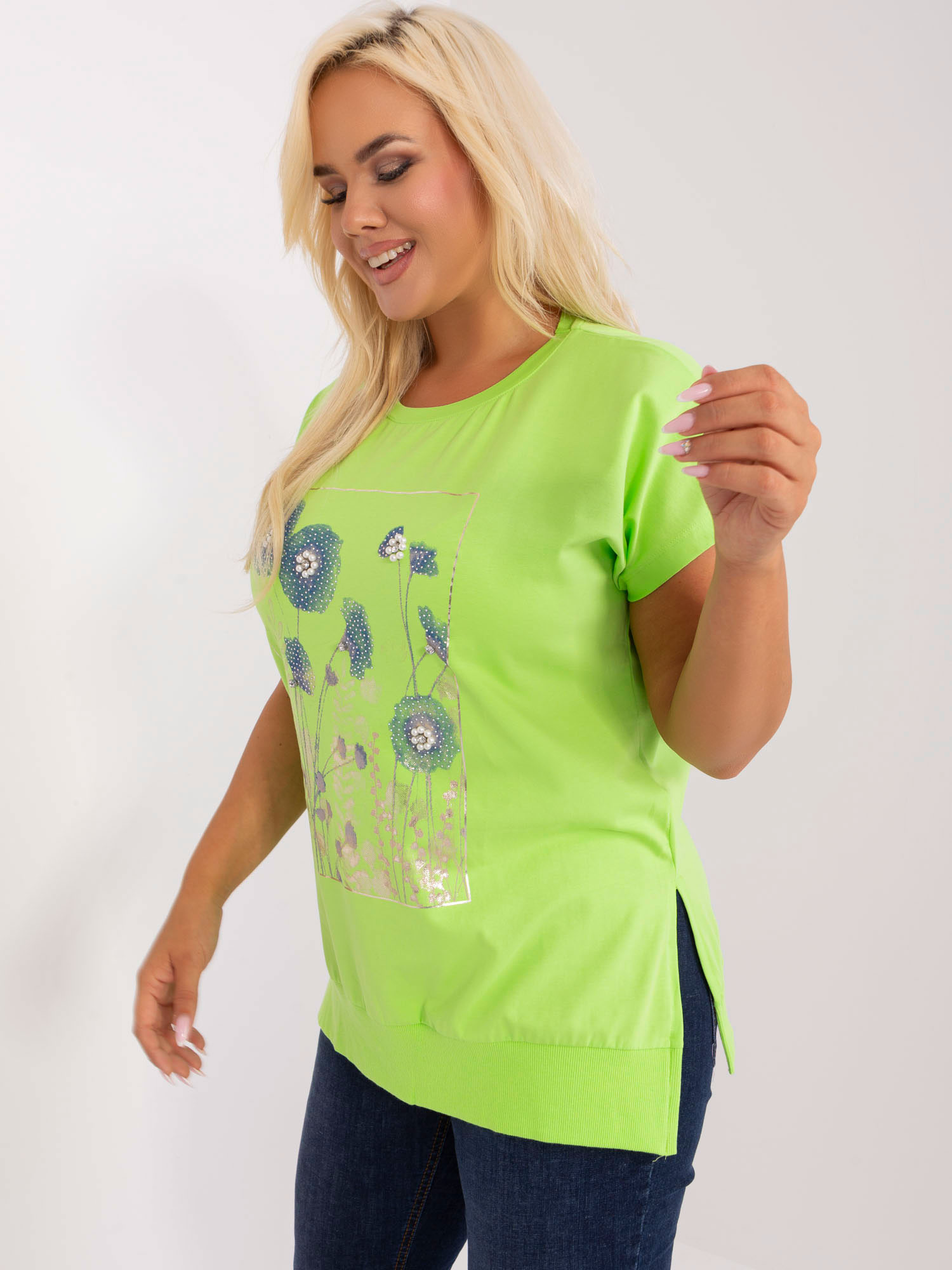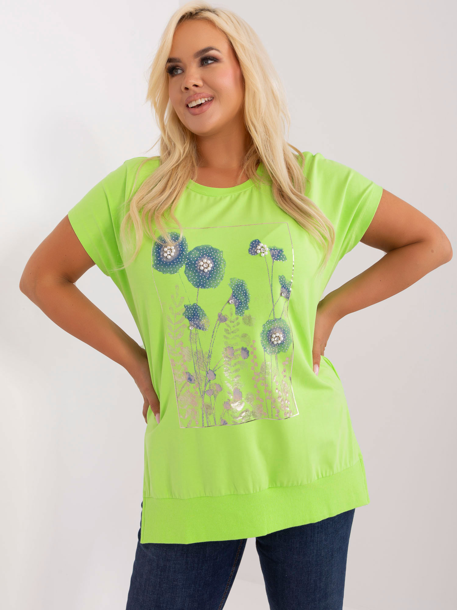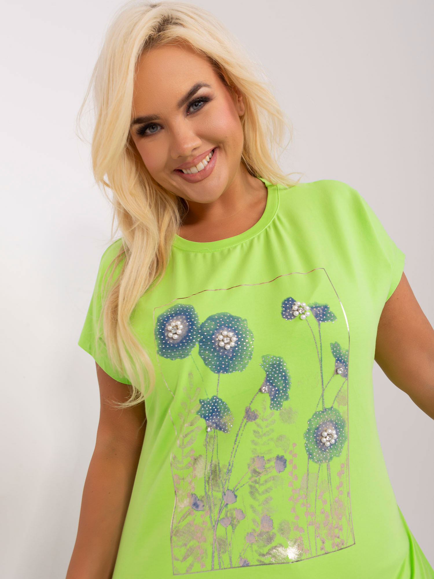 Jasnozielona bluzka plus size z krótkim rękawem .