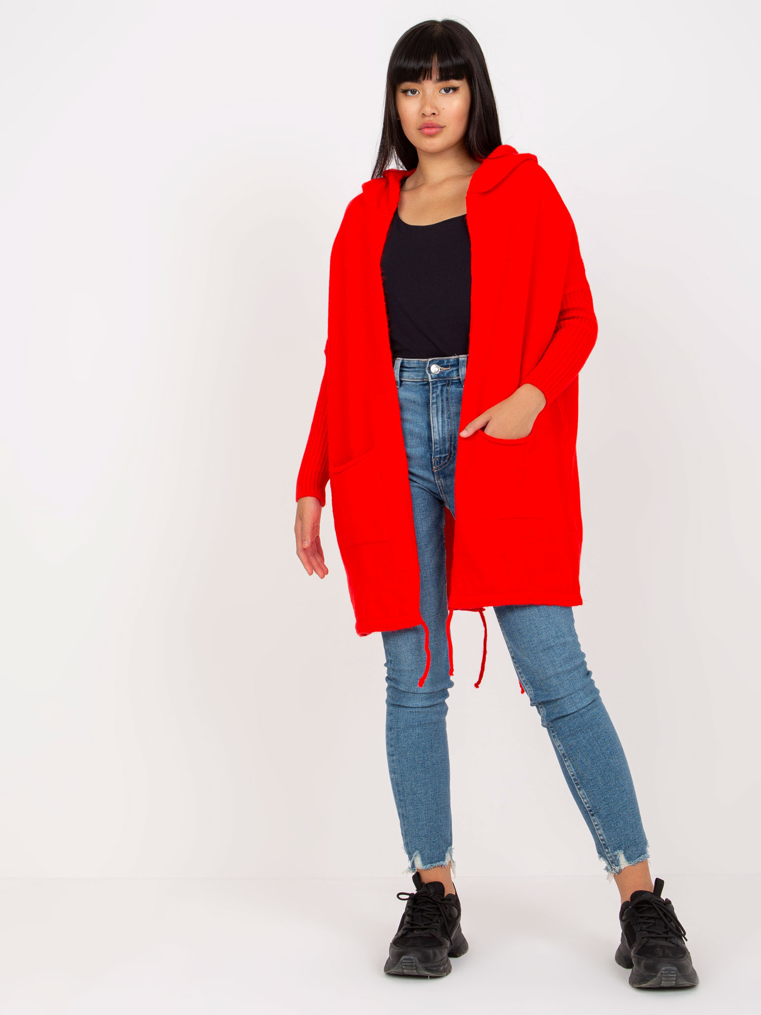 - Modelka: Modelka ma na sobie rozmiar one size Wymiary modelki: wzrost 172 cm, biust 103 cm, talia 73 cm, biodra 103 cm