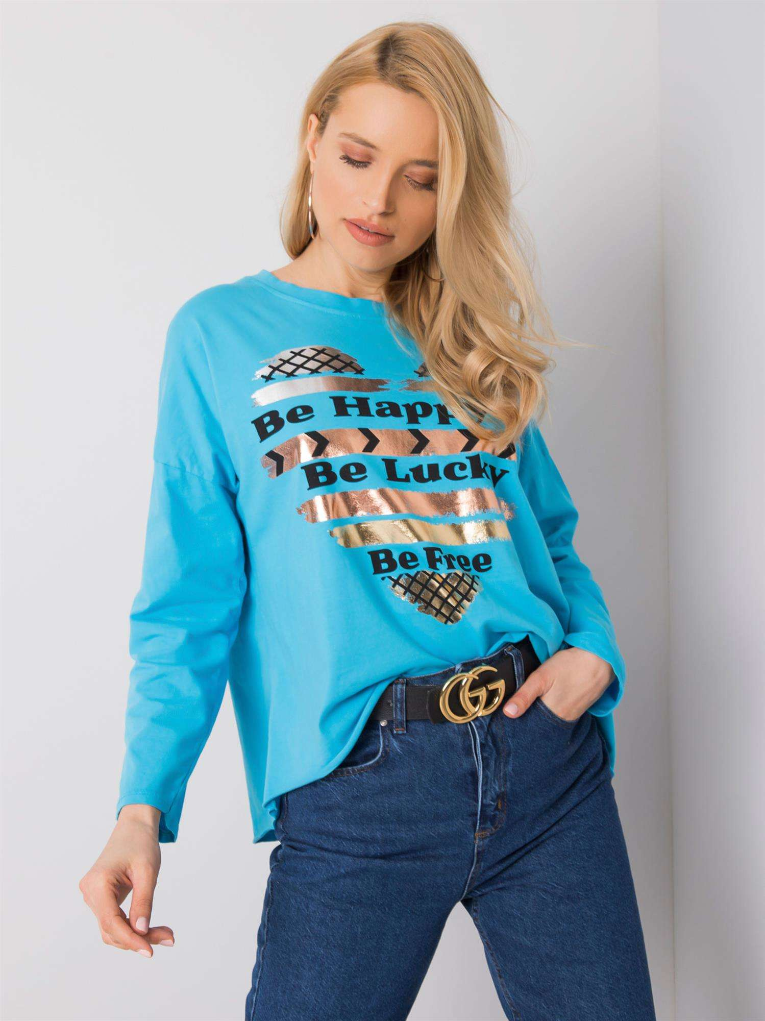 Niebieska bluzka bawełniana z nadrukiem.