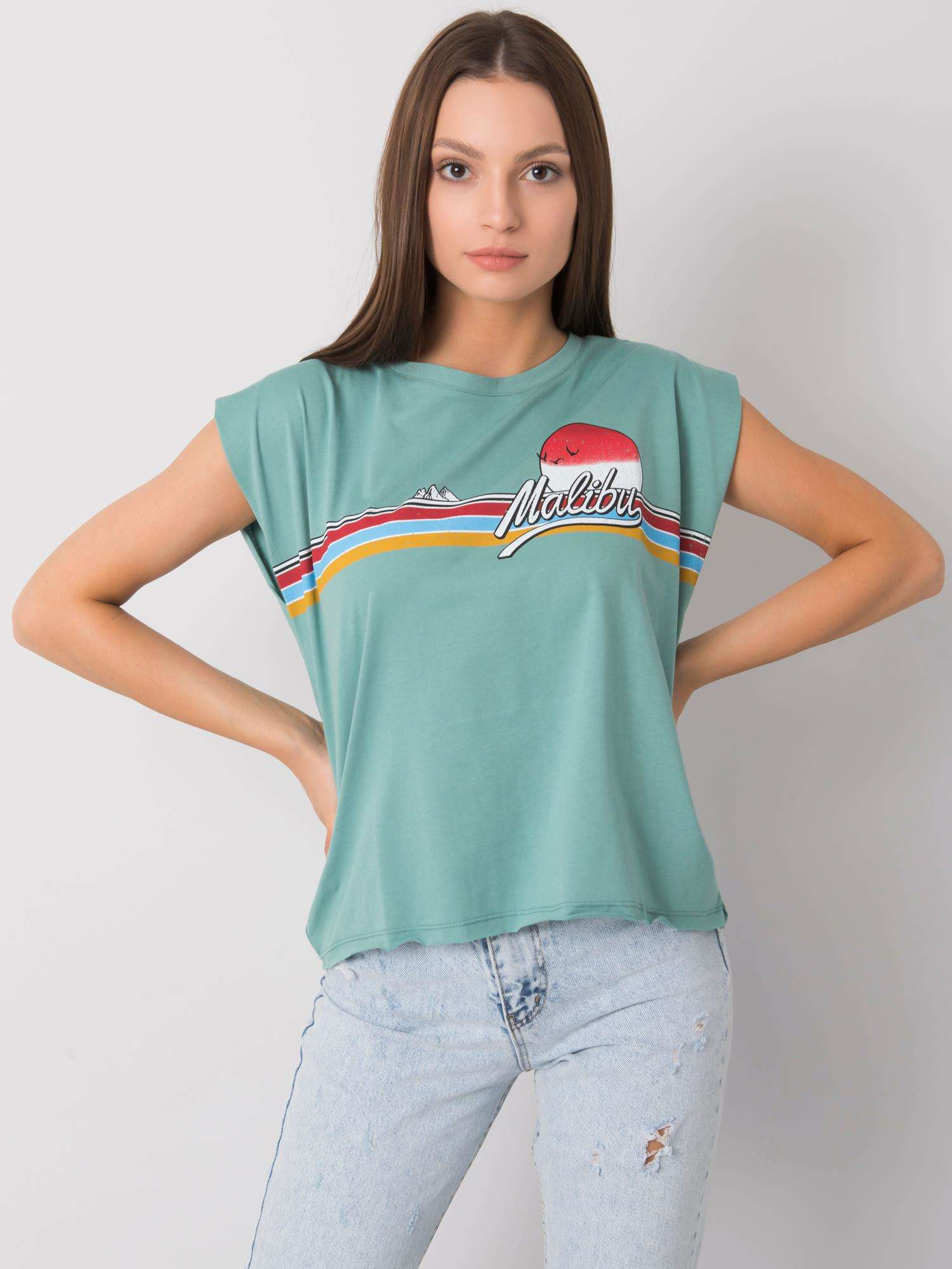 Jasnozielony bawełniany t-shirt damski z nadrukiem.