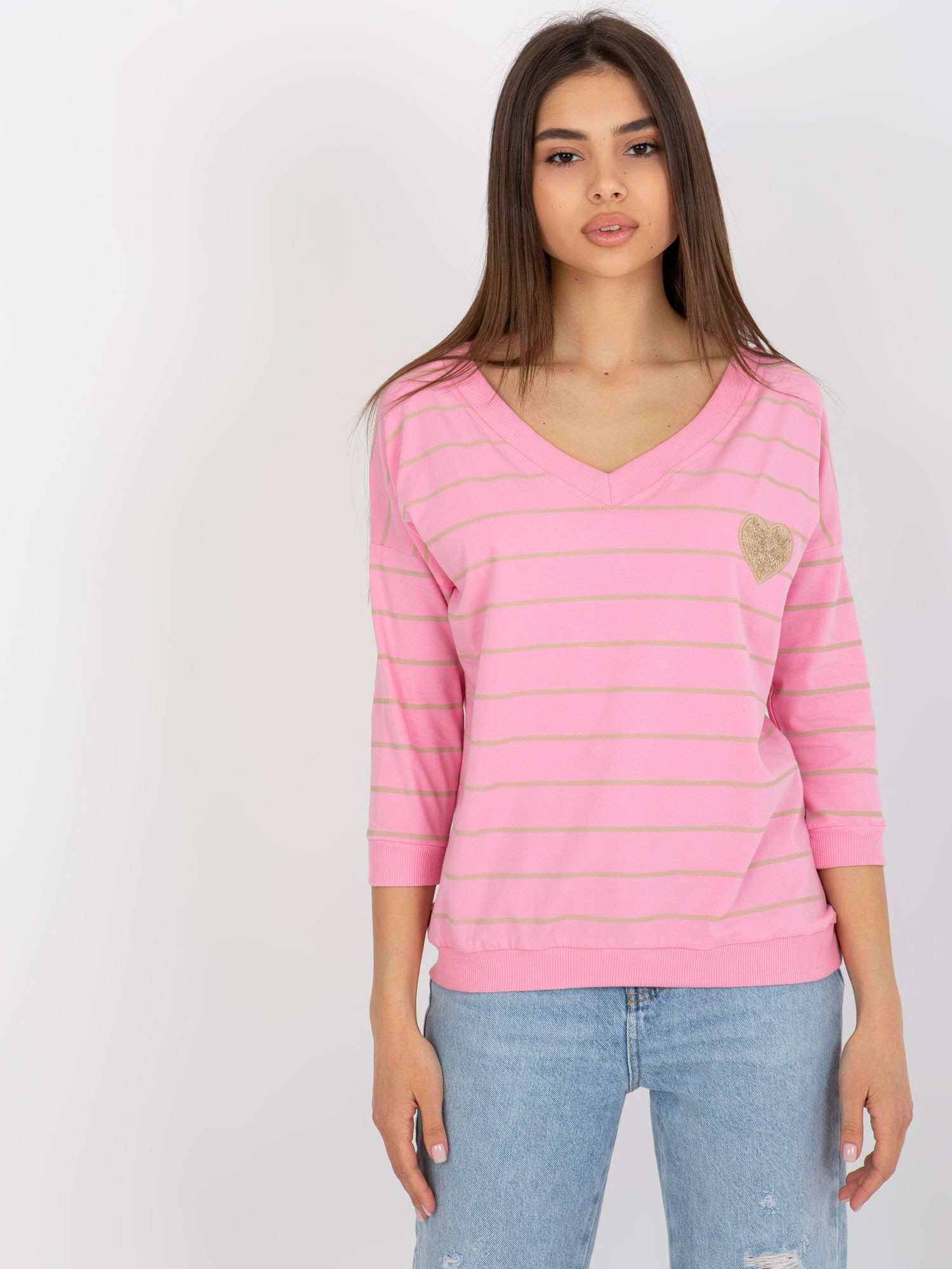 Różowo-beżowa bawełniana bluzka w paski BASIC FEEL GOOD .