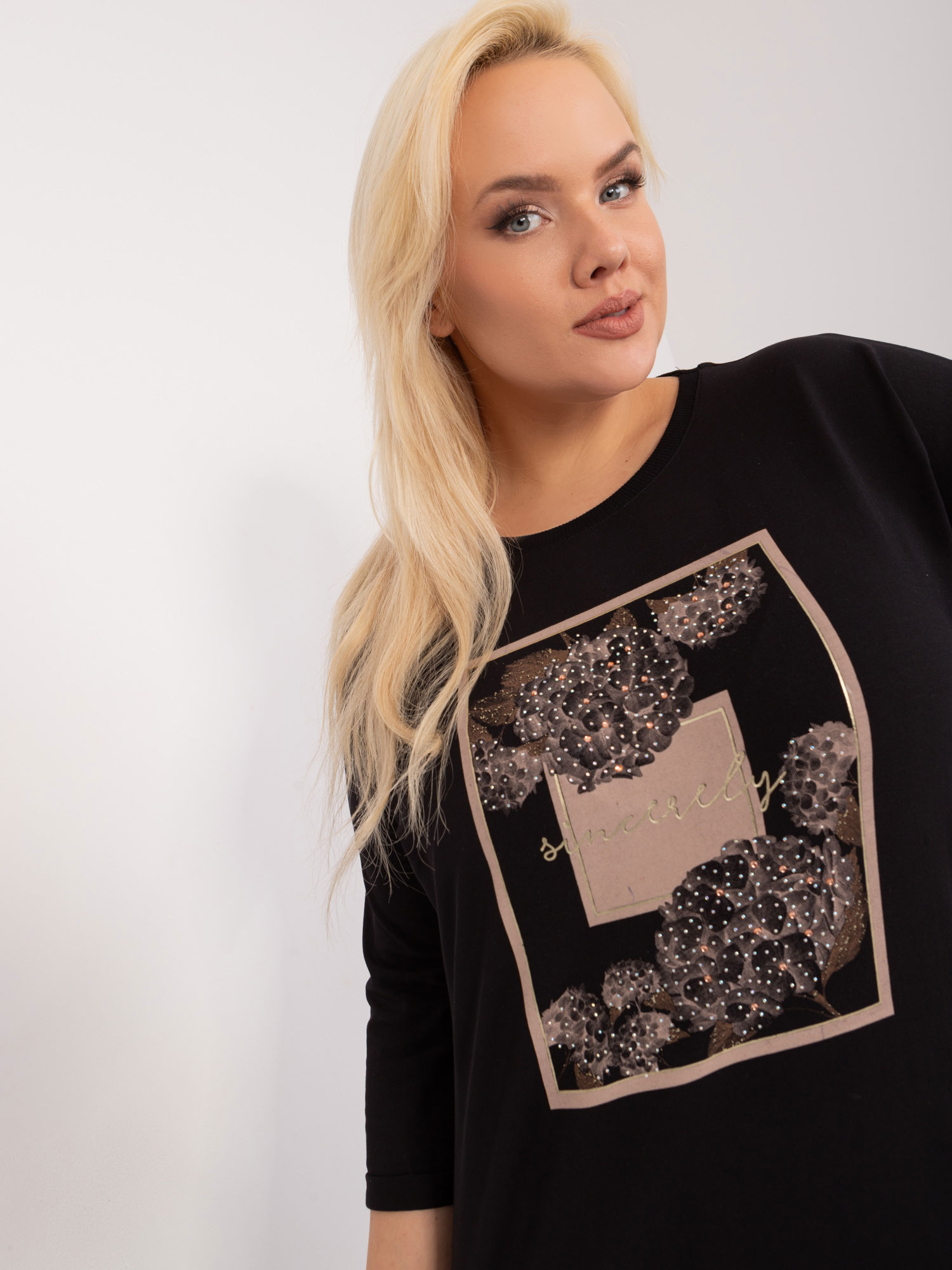 Wymiary bluzki w rozmiarze one size mierzone na płasko: szerokość pod pachami – 61 cm, długość całkowita – 66 cm, długość rękawa – 60 cm