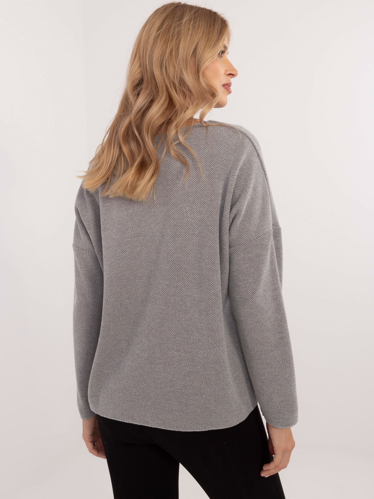 Wymiary swetra w rozmiarze one size: szerokość pod pachami – 62 cm, długość rękawa – 55 cm, długość całkowita – 61 cm.