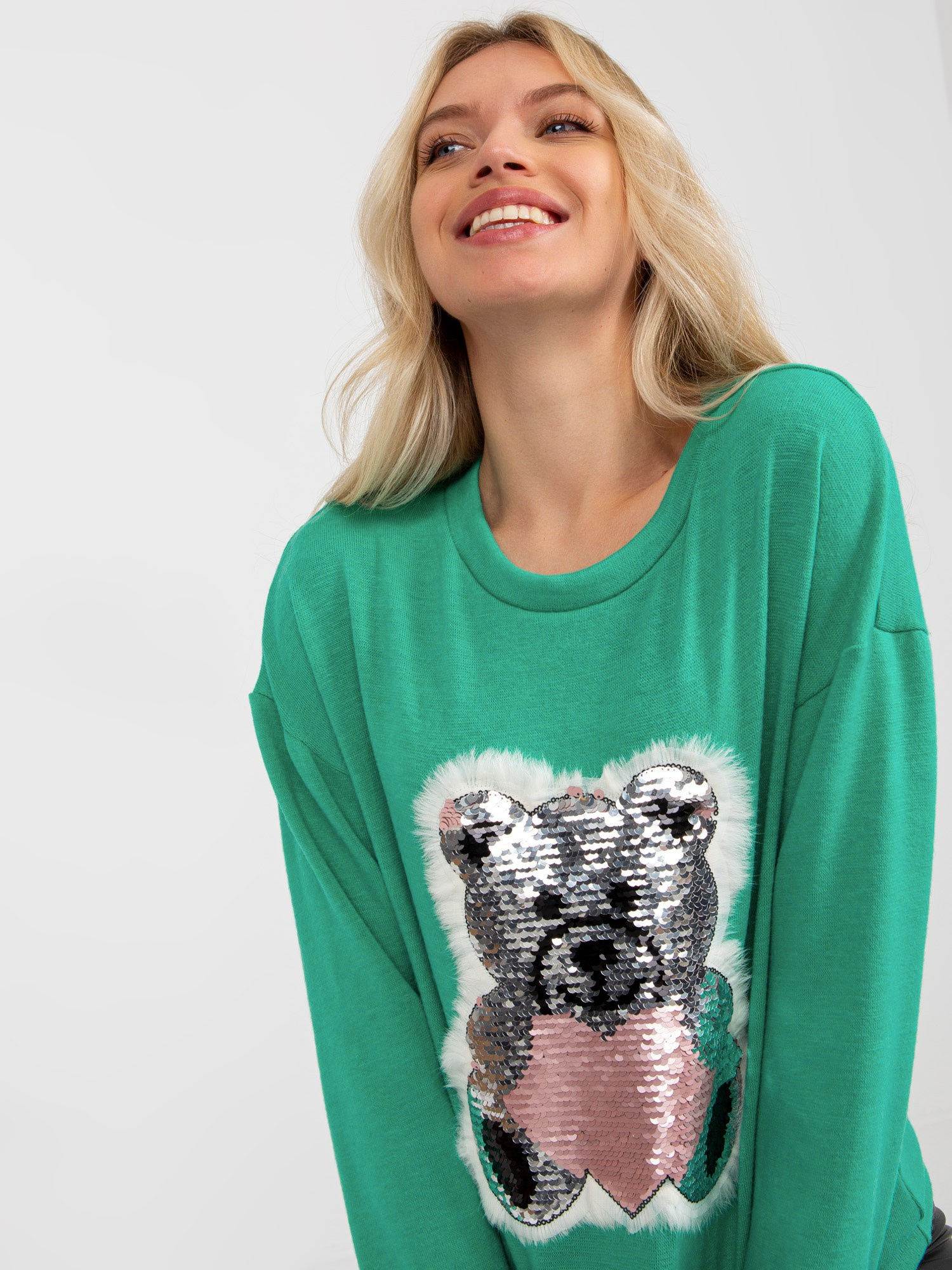 Turkusowy damski sweter klasyczny z aplikacją z cekinów .