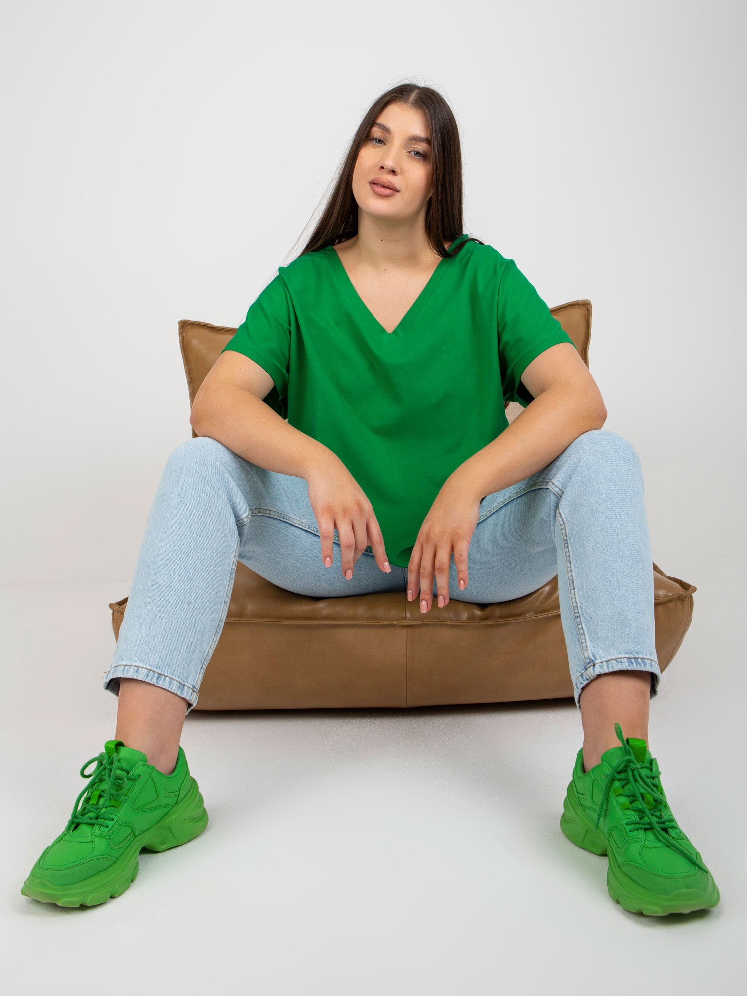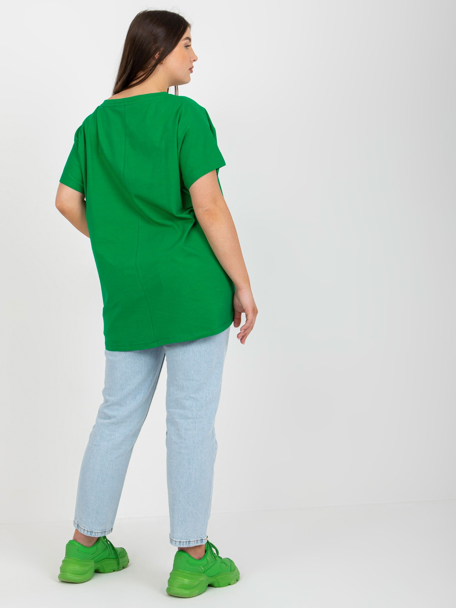 Zielony damski t-shirt basic plus size.
