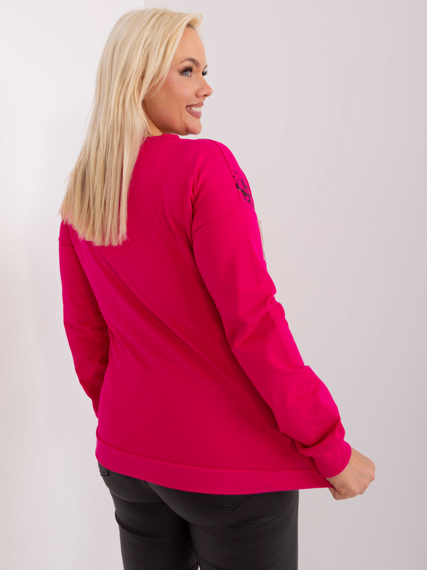 Wymiary bluzy w rozmiarze one size mierzone na płasko: szerokość pod pachami – 60 cm, długość rękawa – 60 cm, długość całkowita (przód) – 62 cm, długość całkowita (tył) – 67 cm .