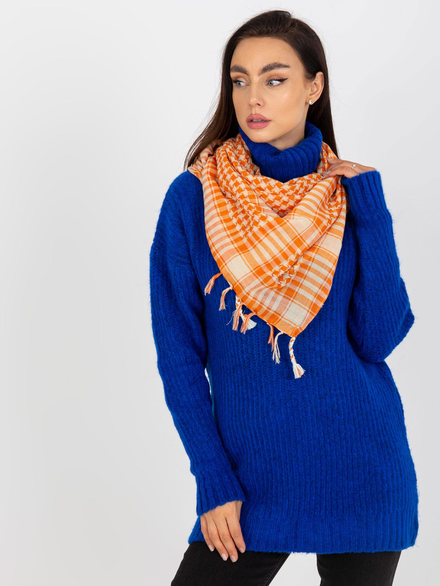 Pomarańczowo-beżowa chusta arafatka z frędzlami .
