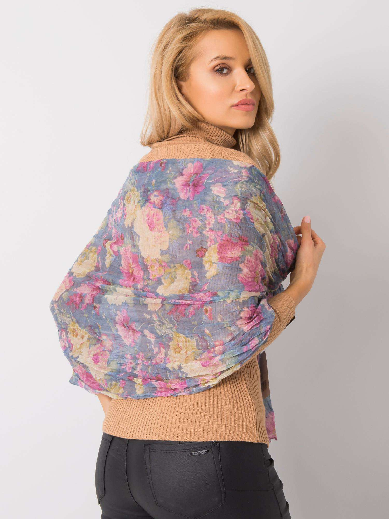 Chusta z frędzelkami i nadrukiem jasnobrązowa.