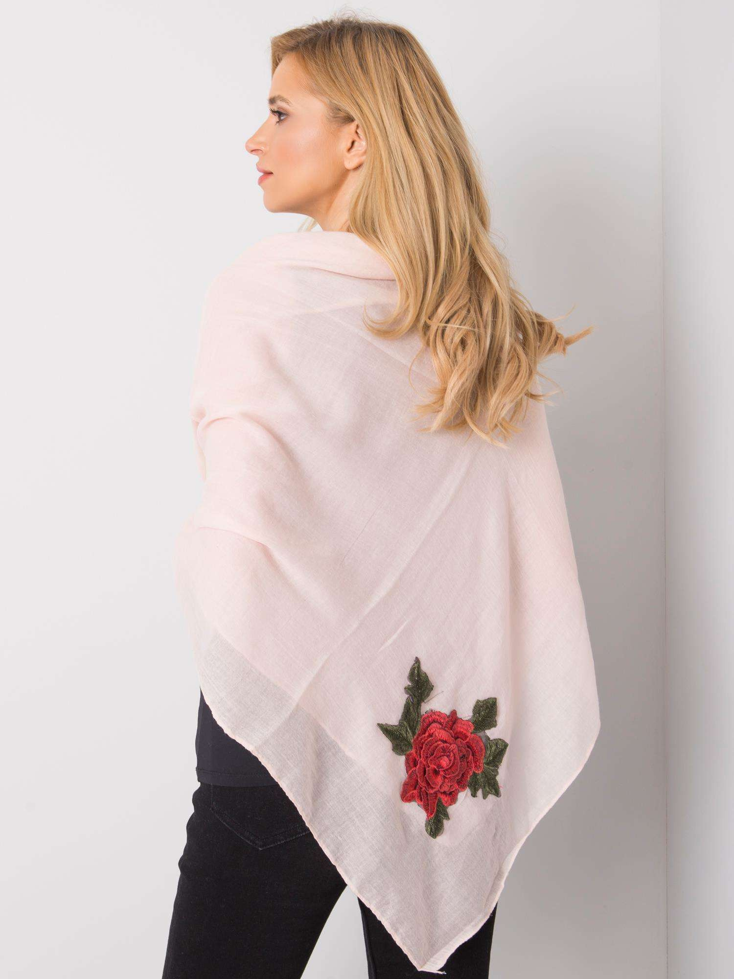 Jasnoróżowa chusta damska z naszywkami.