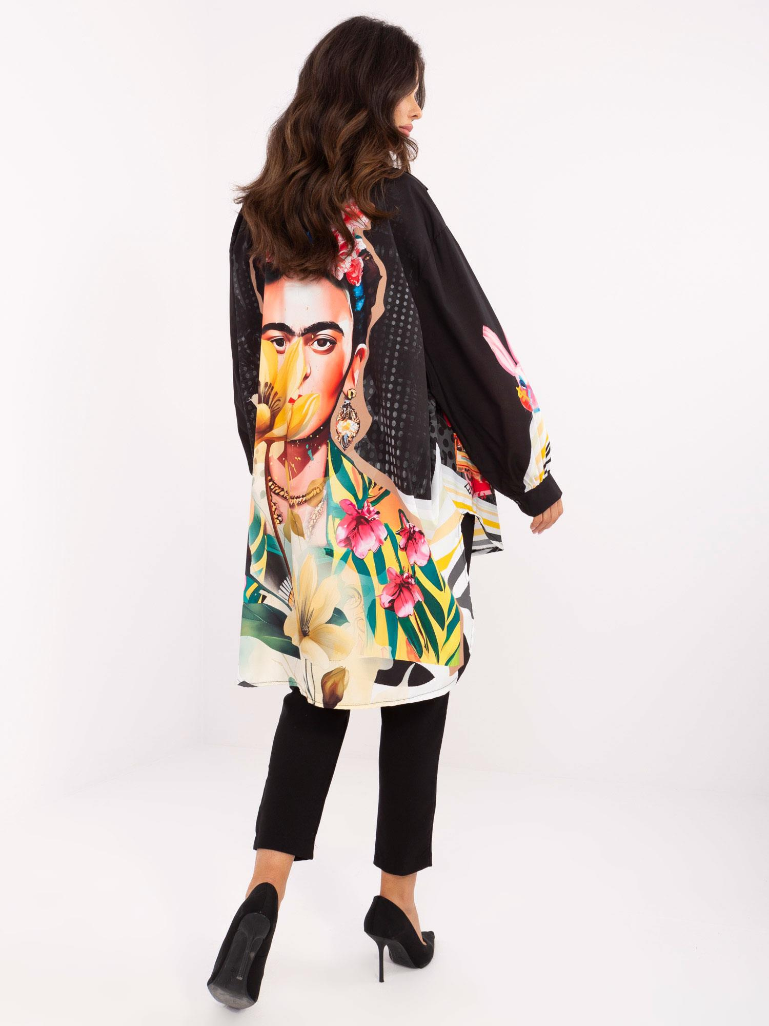 Kobaltowo-czarna chusta arafatka z frędzlami .