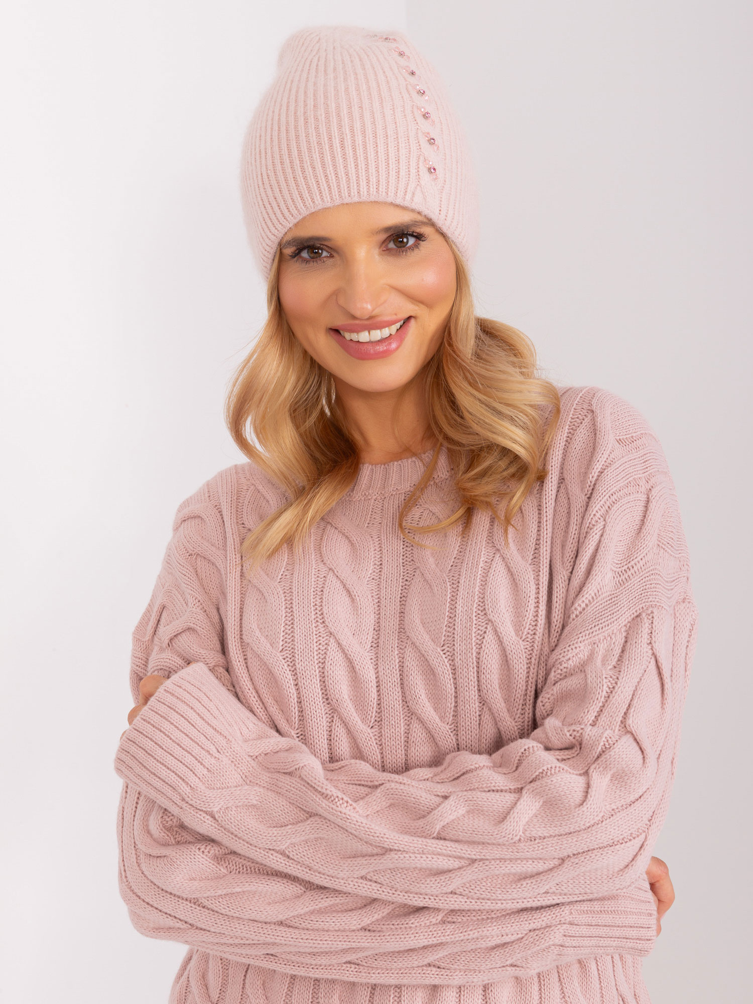 Ceglasta damska czapka zimowa typu beret .