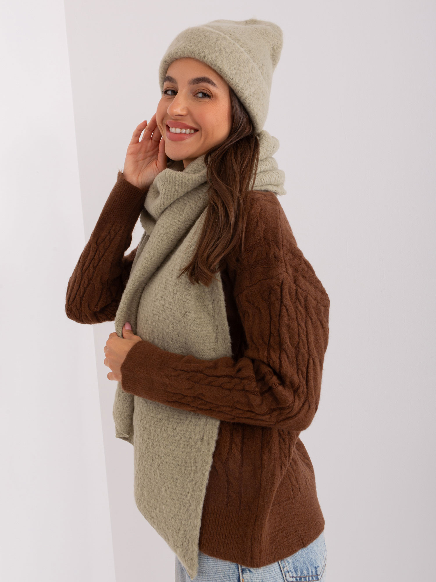 Pistacjowa czapka zimowa typu beanie .