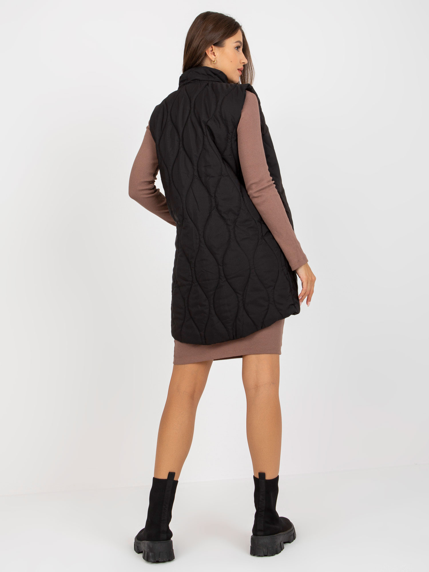 Czarna damska pikowana kamizelka na suwak RUE PARIS .