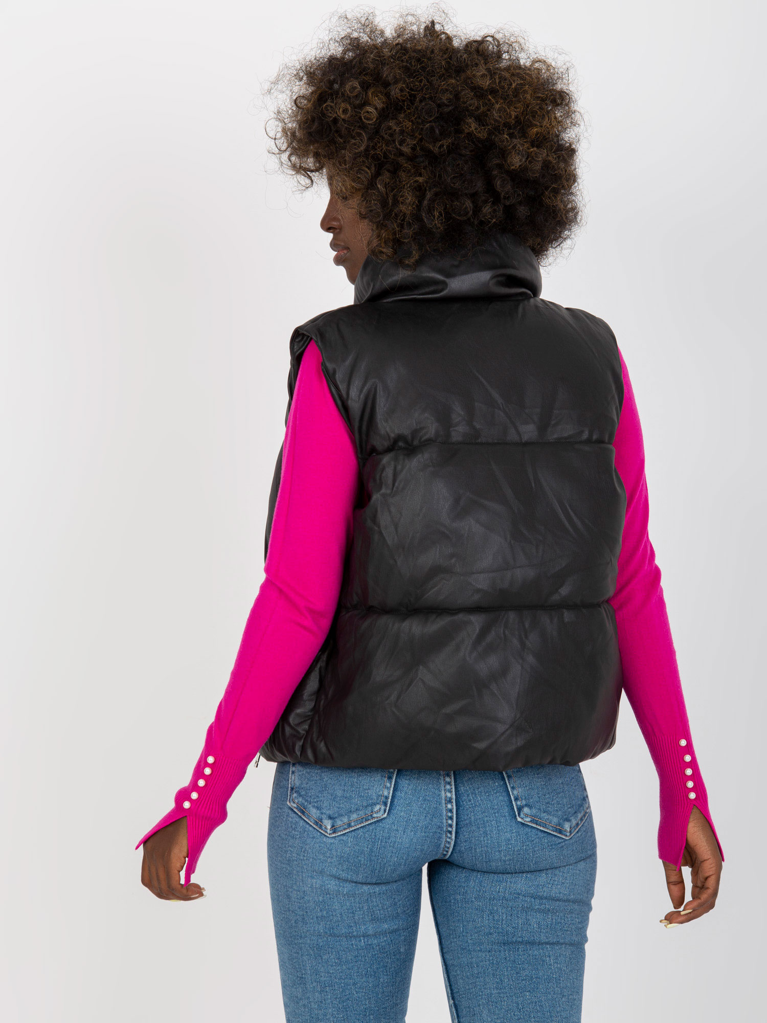 Czarna pikowana kamizelka z eko skóry .
