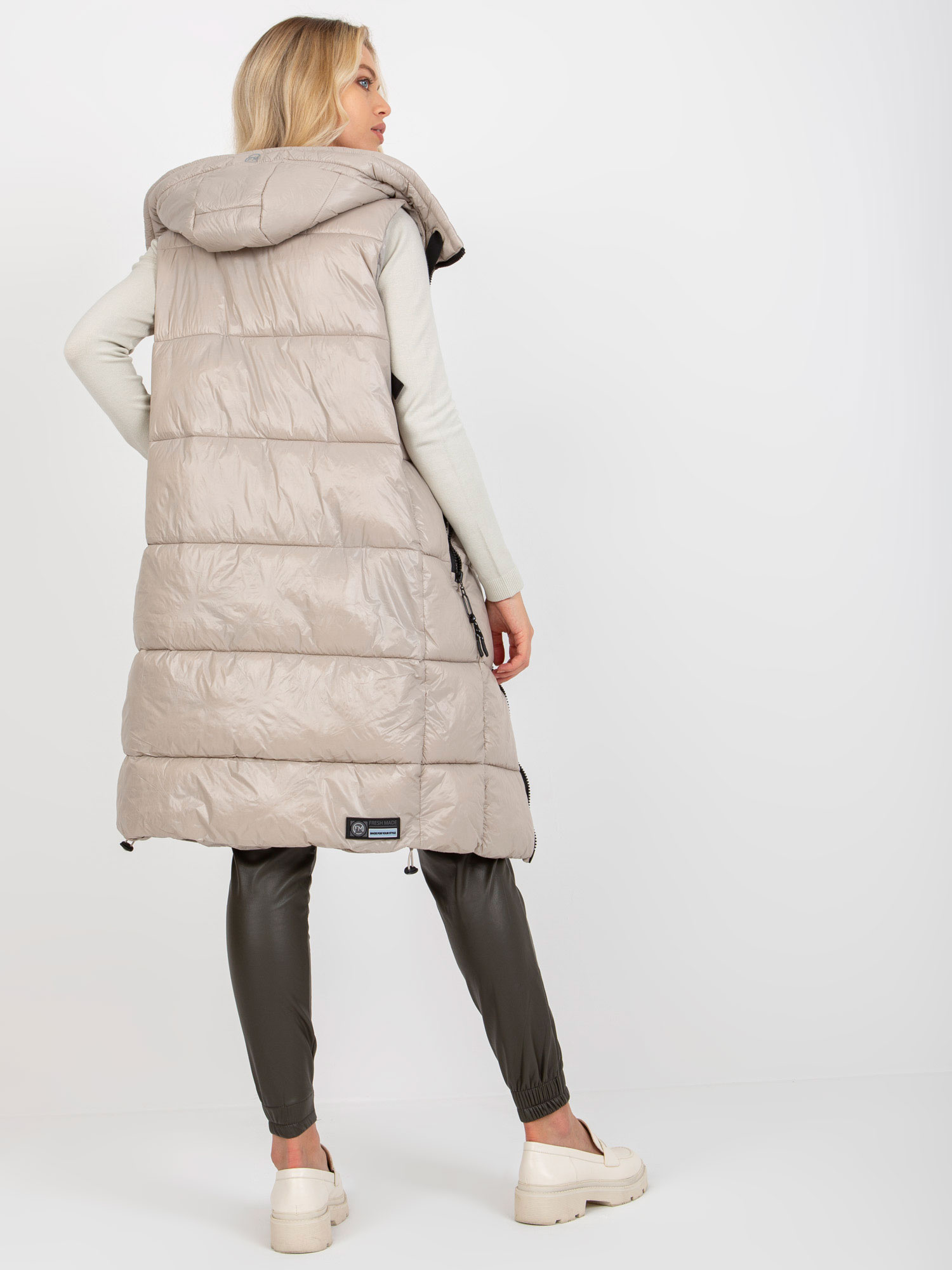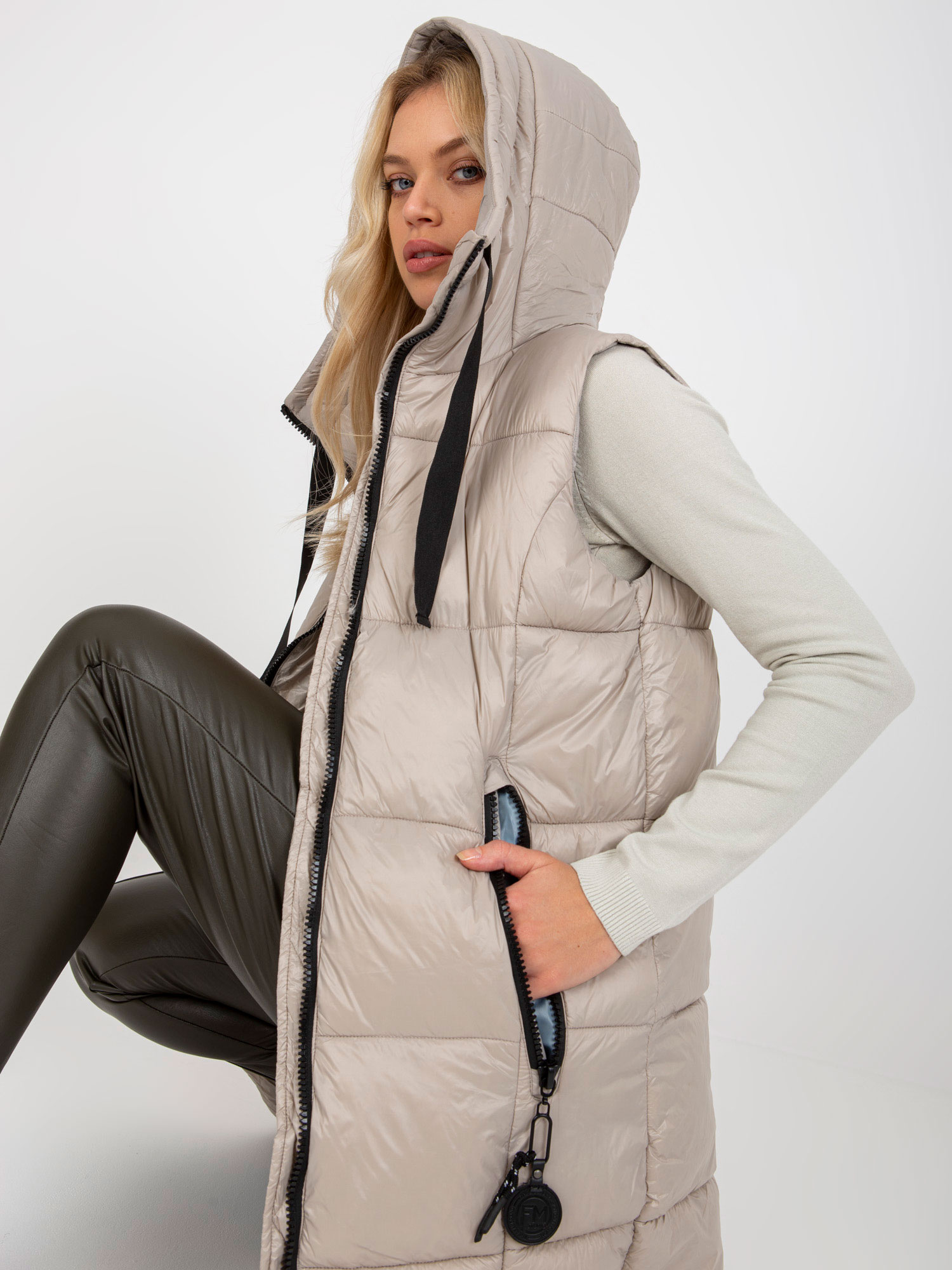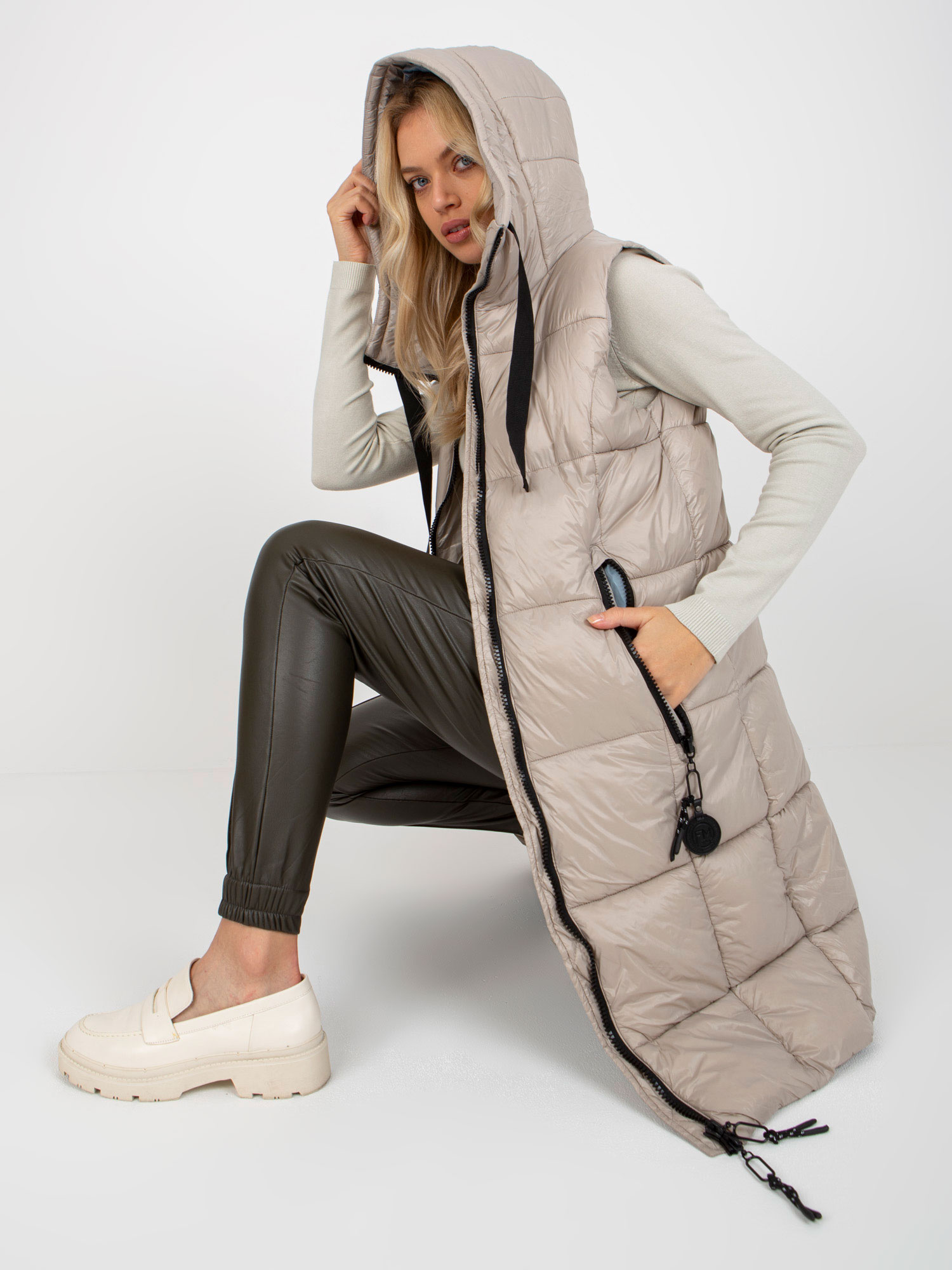 Jasnobeżowa długa kamizelka puchowa z kapturem FRESH MADE .
