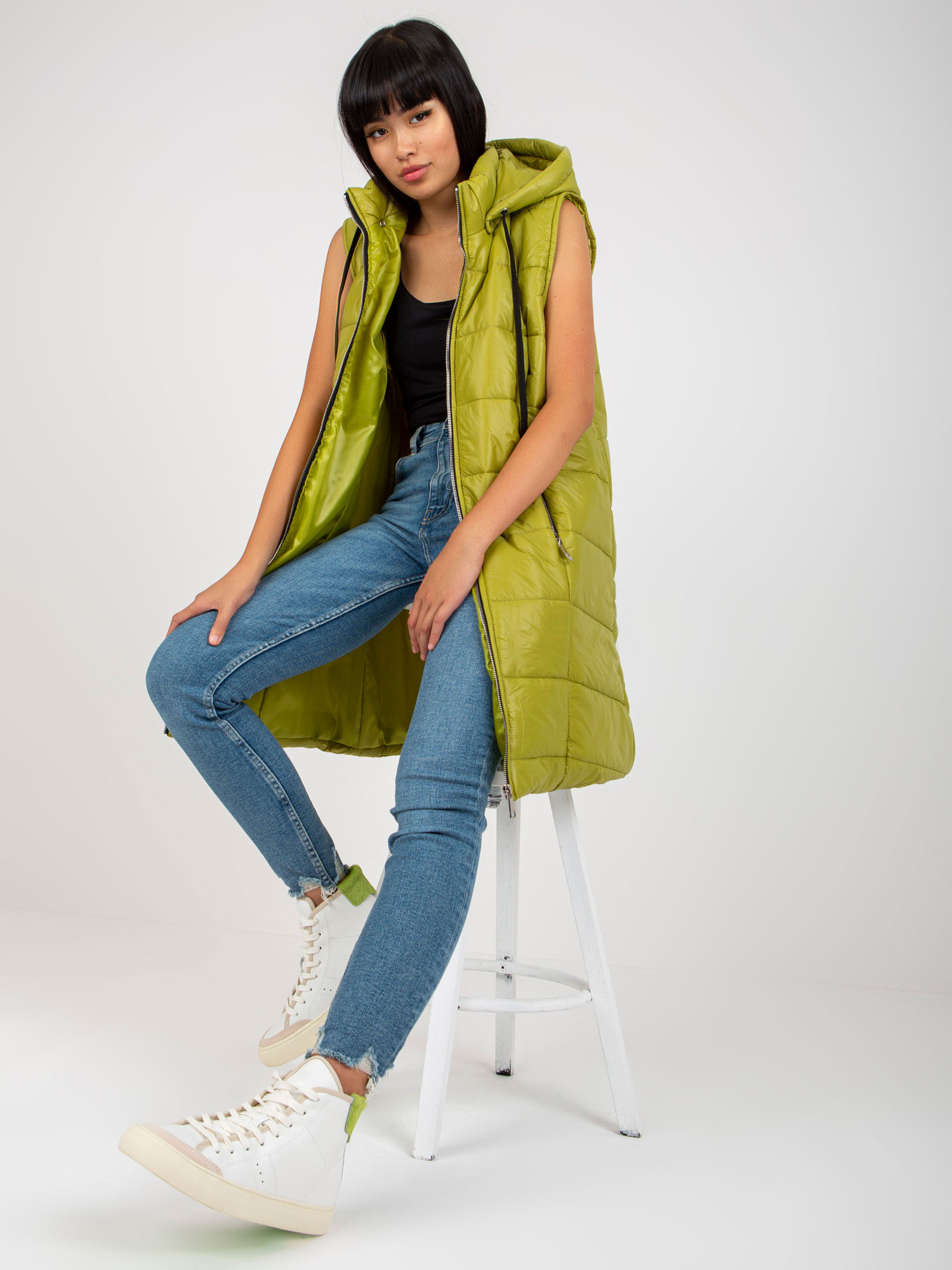 Jasnozielona długa kamizelka puchowa z pikowaniem OCH BELLA .