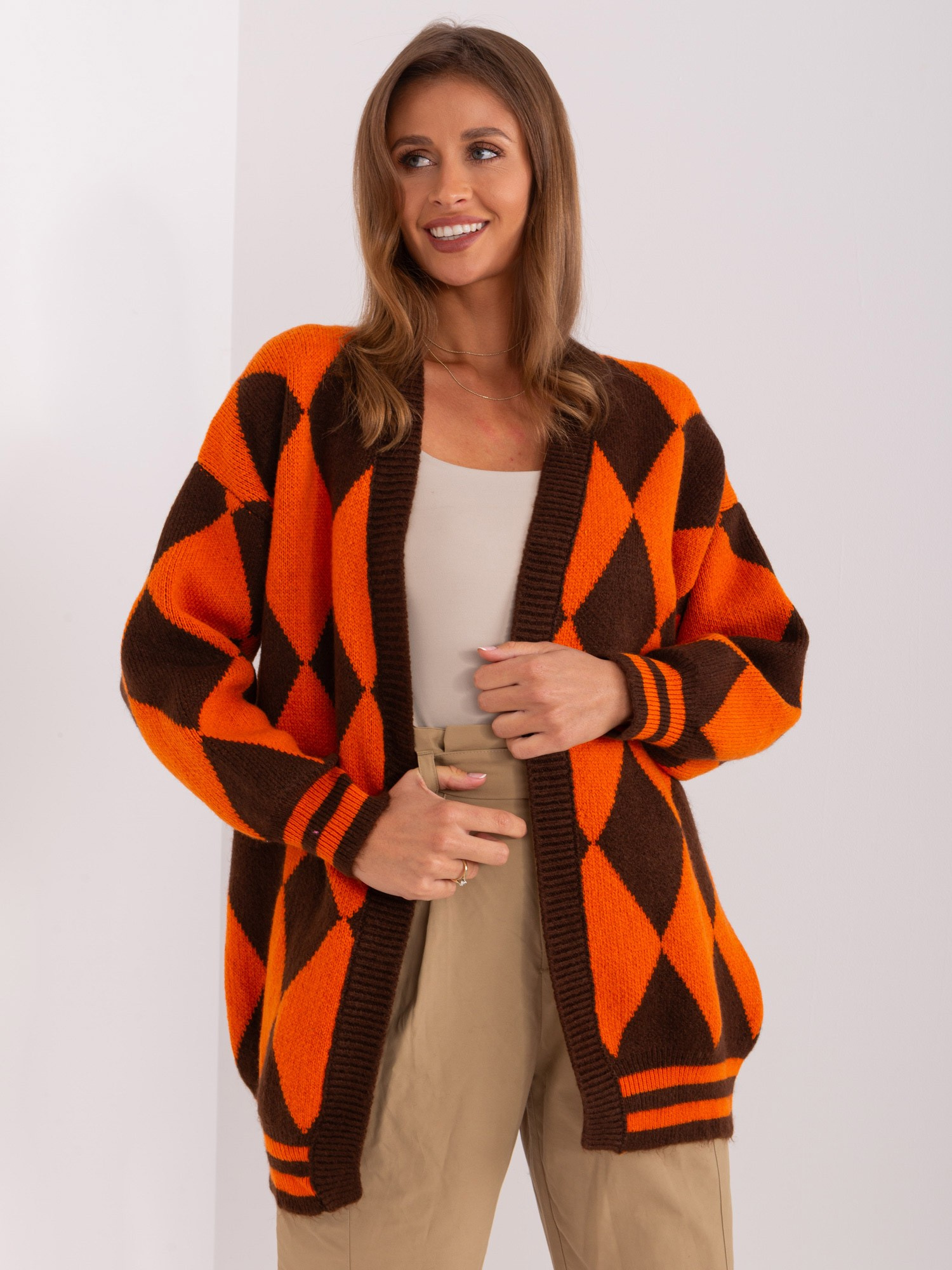 Brązowo-pomarańczowy kardigan bez zapięcia