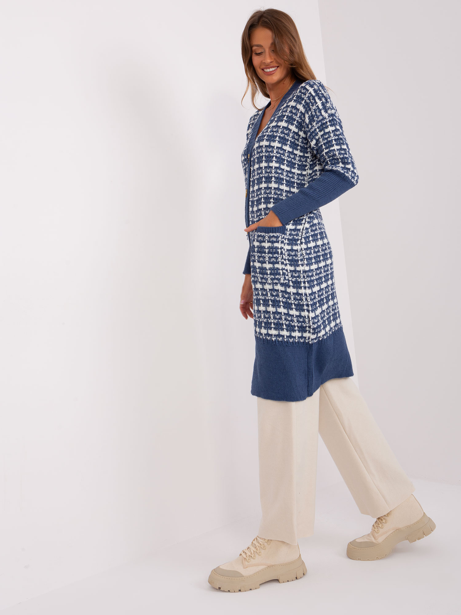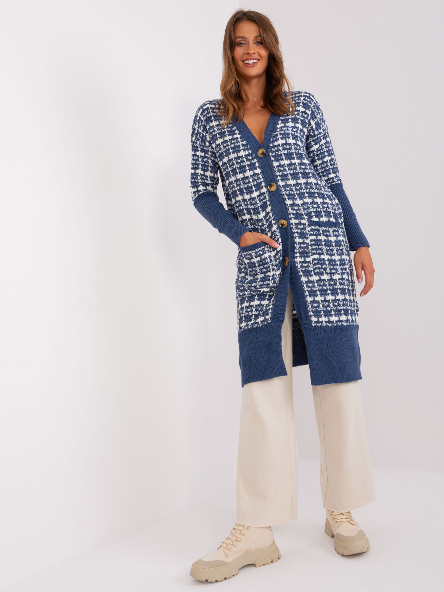 Wymiary kardiganu w rozmiarze one size mierzone na płasko: szerokość pod pachami – 68 cm, długość rękawa – 64 cm, długość całkowita – 104 cm.