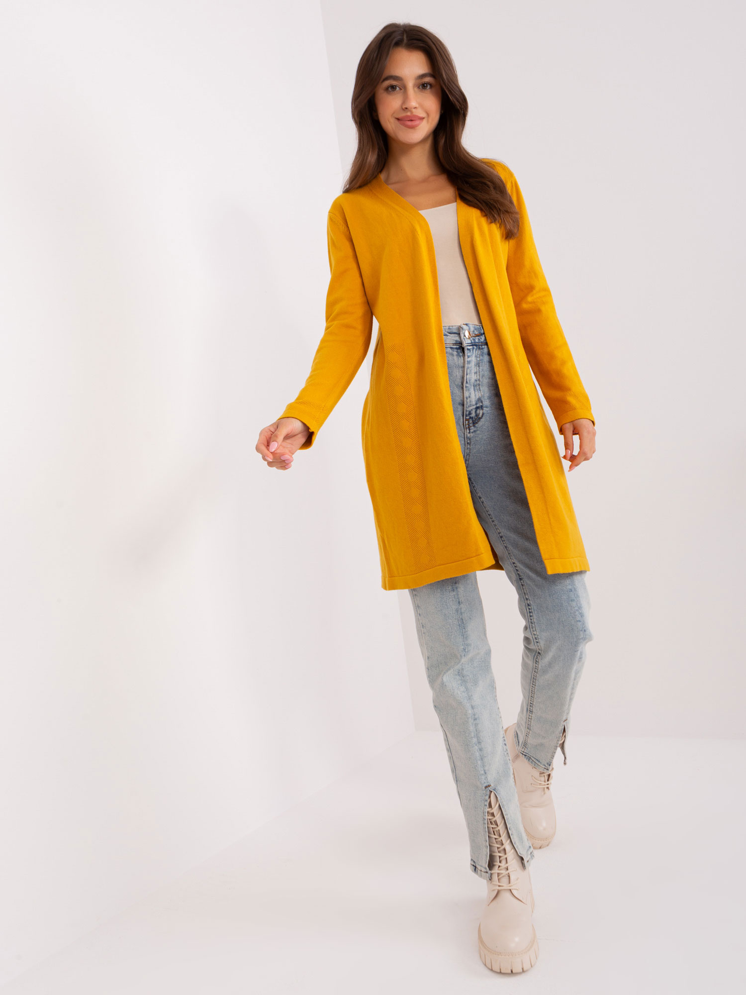 Wymiary kardiganu w rozmiarze one size mierzone na płasko: szerokość pod pachami – 60 cm, długość rękawa – 65 cm, długość całkowita – 95 cm.