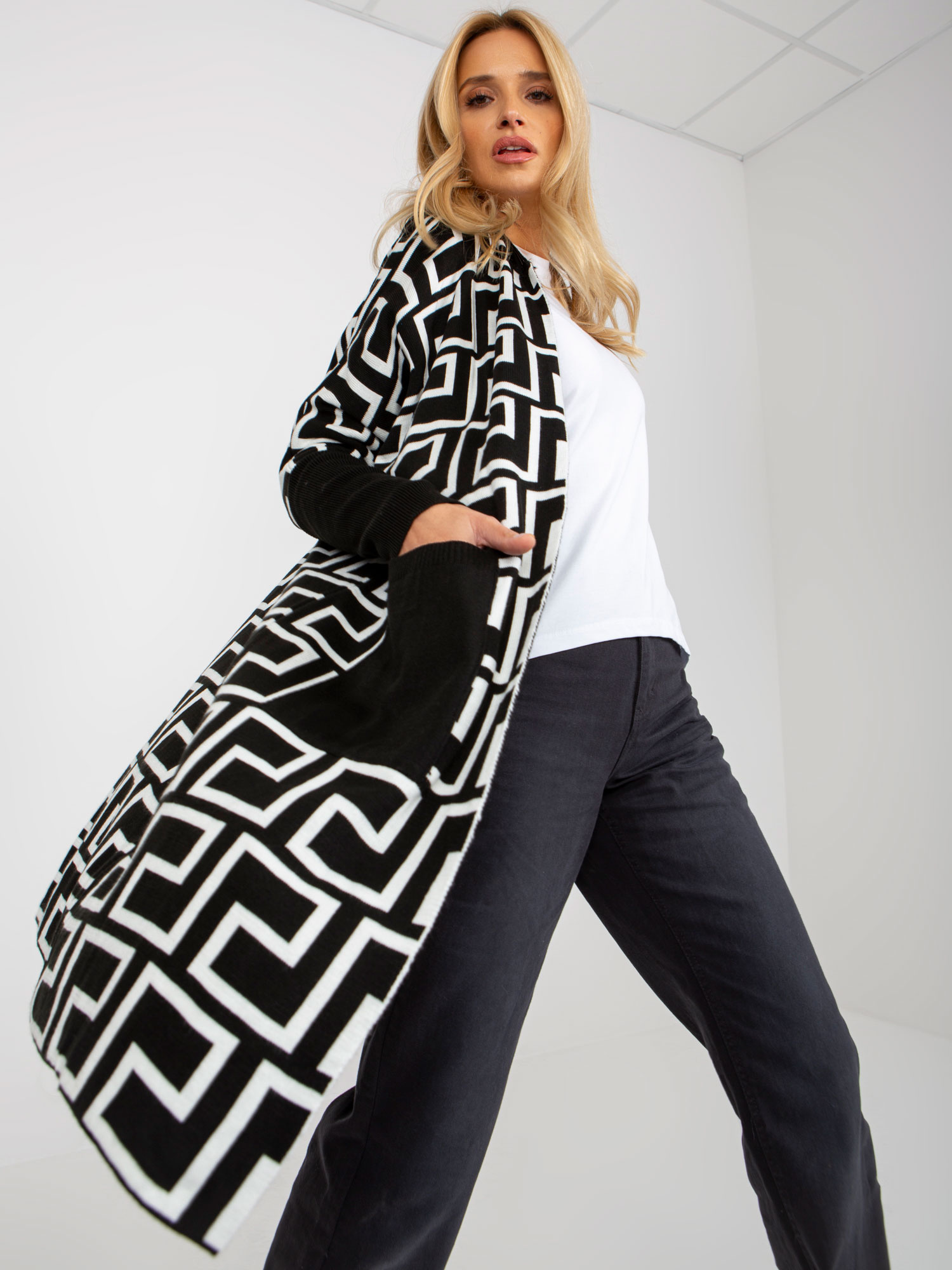 Wymiary kardiganu w rozmiarze one size mierzone na płasko: szerokość pod pachami – 60 cm, długość rękawa – 63 cm, długość całkowita – 97 cm.
