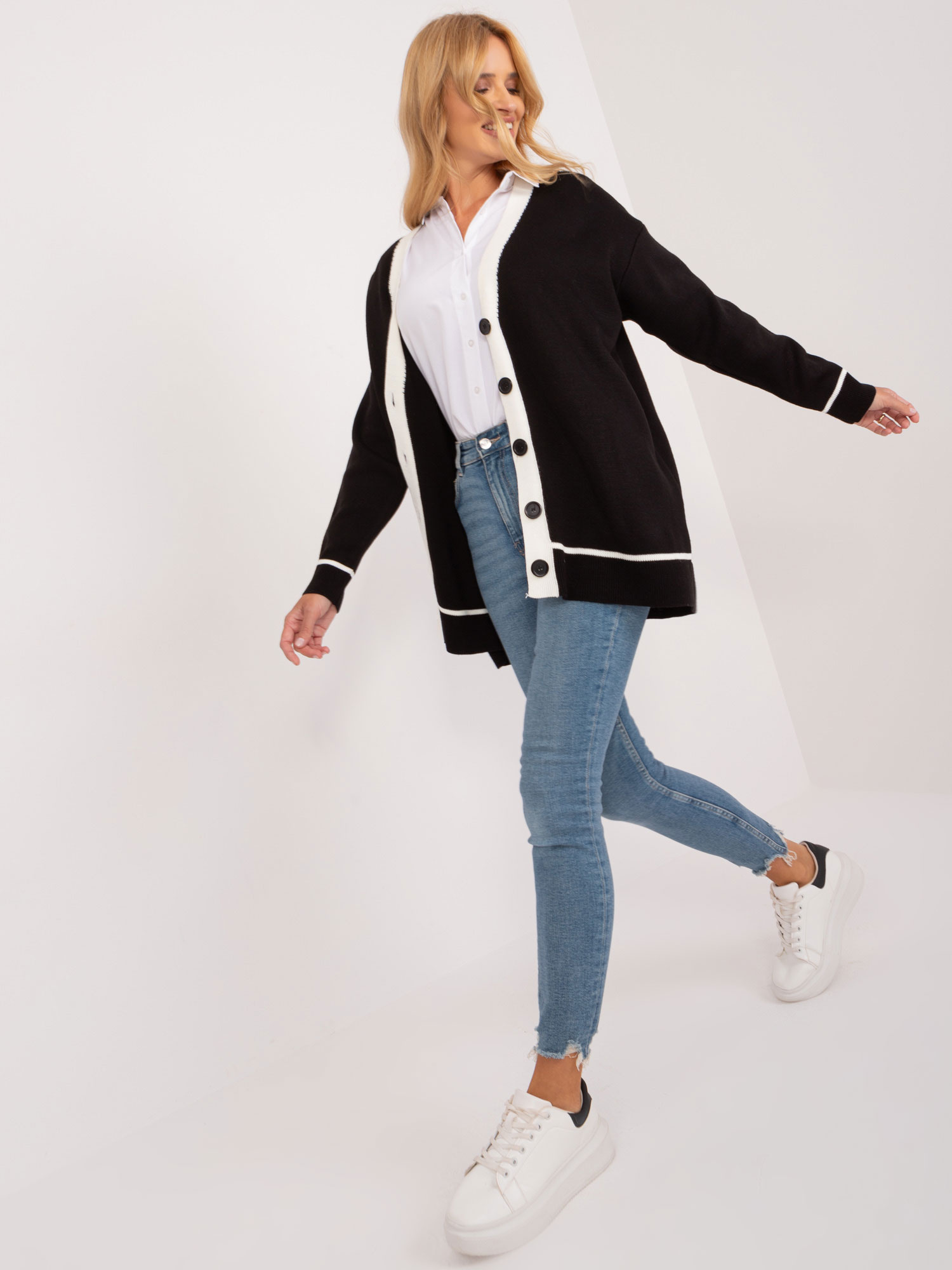 Wymiary swetra w rozmiarze one size mierzone na płasko: szerokość pod pachami – 61 cm, długość rękawa – 59 cm, długość całkowita – 70 cm