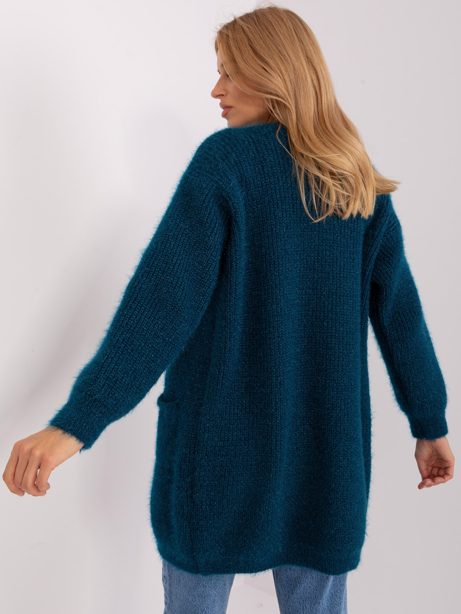 Wymiary kardiganu w rozmiarze one size mierzone na płasko: szerokość pod pachami – 70 cm, długość rękawa – 60 cm, długość całkowita – 90 cm.