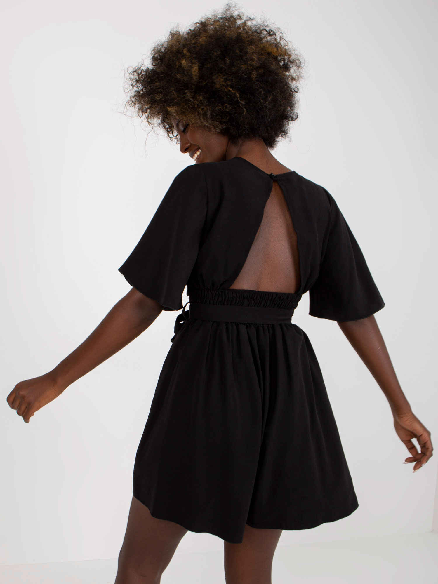 Modelka ma na sobie rozmiar S/M. Wymiary modelki: wzrost 168 cm, biust 82 cm, talia 62 cm, biodra 93 cm.