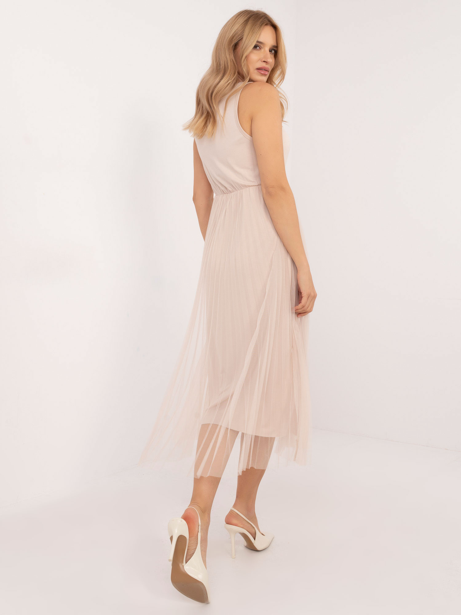 Modelka ma na sobie rozmiar one size. Wymiary modelki: wzrost 175 cm, biust 90 cm, talia 66 cm, biodra 94 cm.
