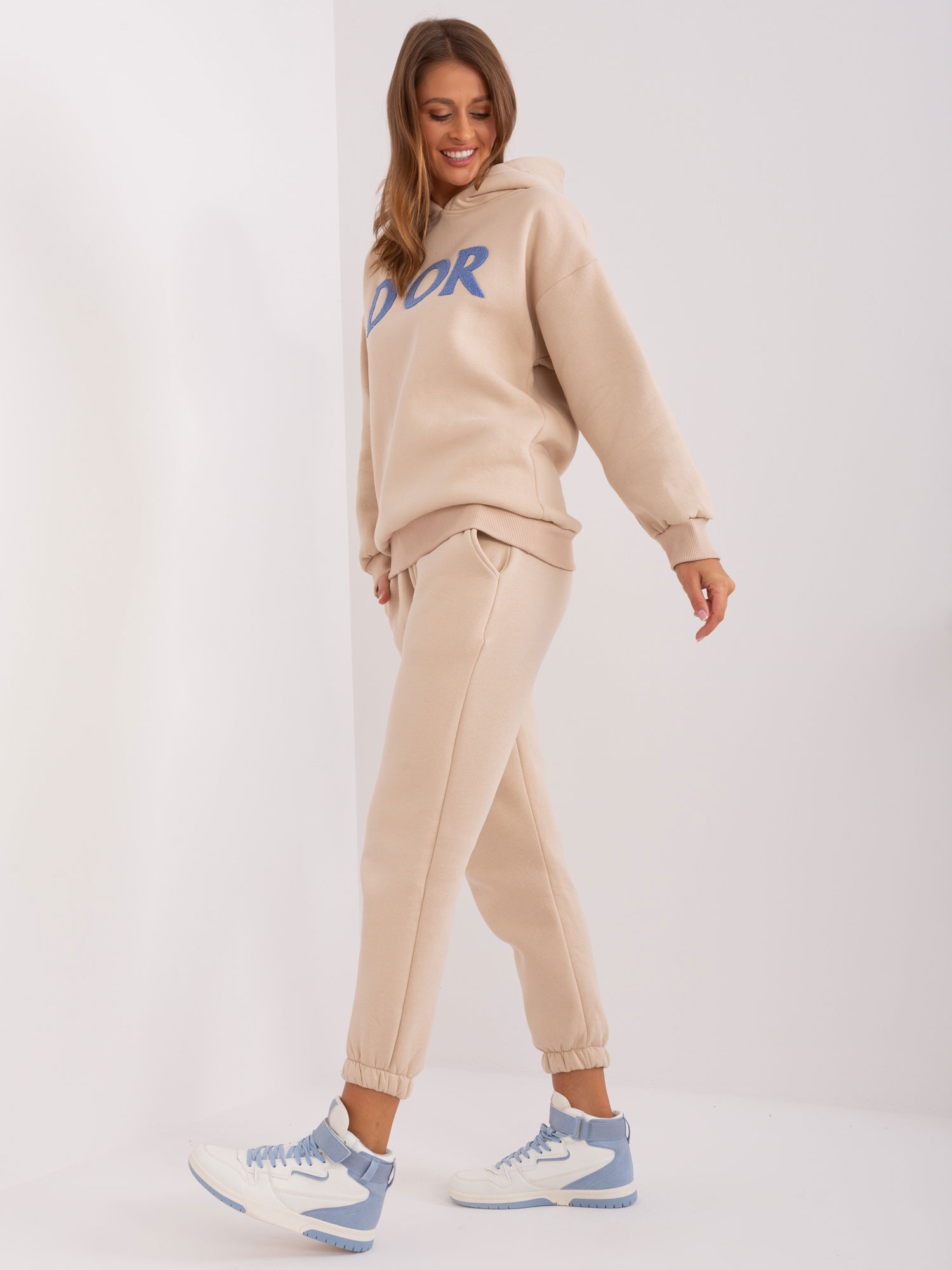 Wymiary kompletu w rozmiarze one size mierzone na płasko: szerokość bluzy pod pachami – 53 cm, długość rękawa – 60 cm, długość bluzy – 67 cm, szerokość spodni w pasie – 38 cm, wysokość stanu – 29 cm, długość spodni – 90 cm.