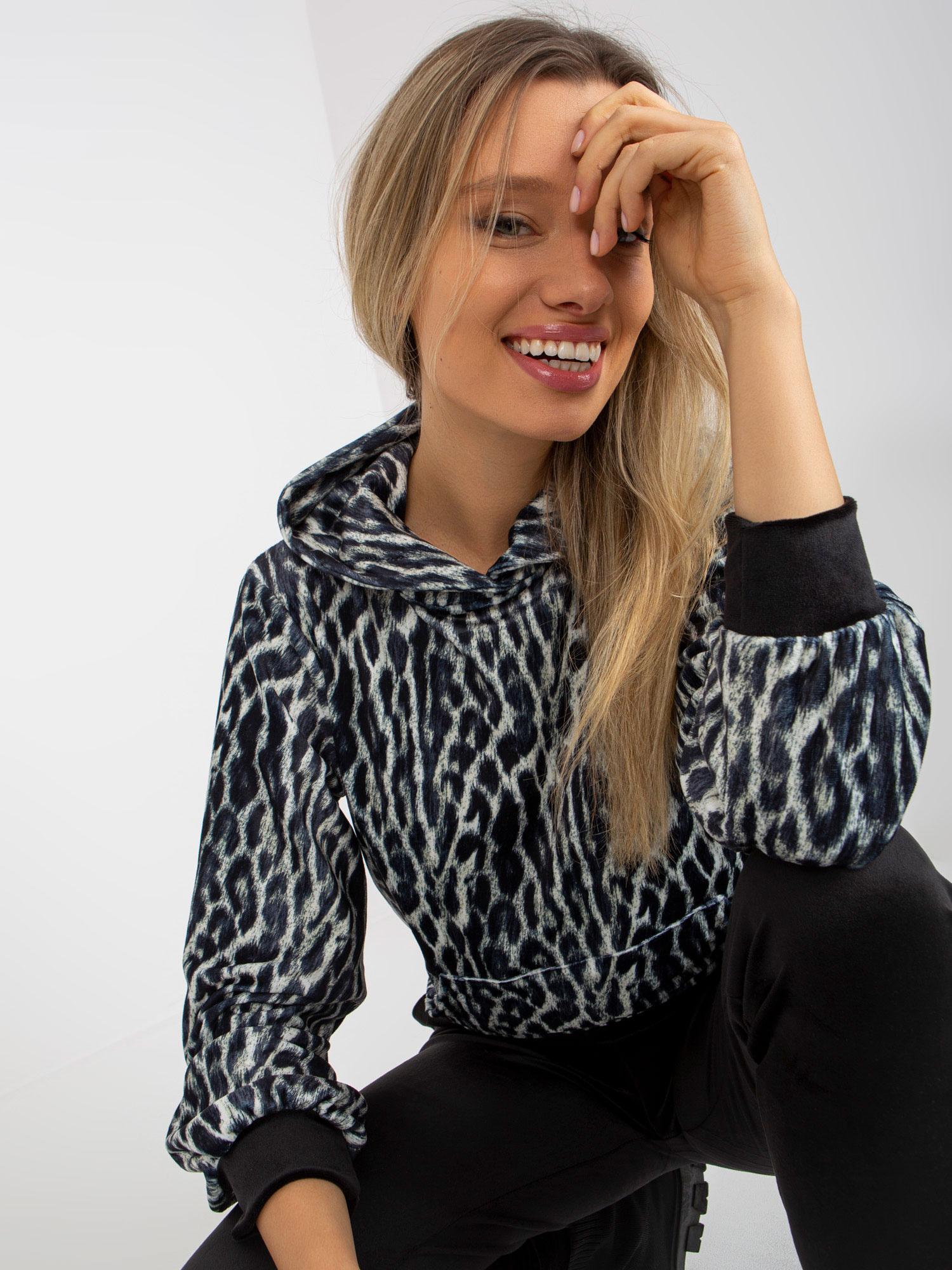 Biało-czarny komplet welurowy z motywem zwierzęcym RUE PARIS .