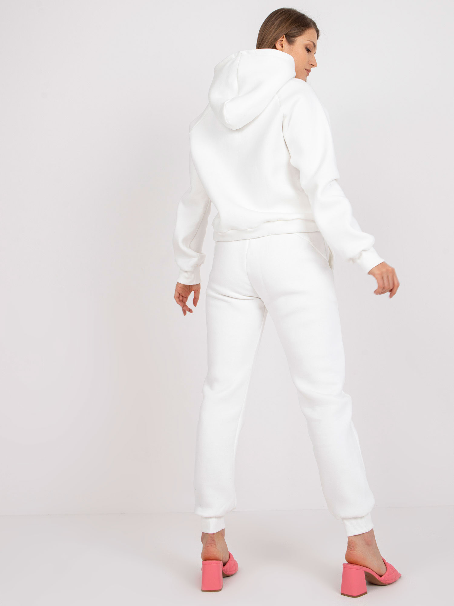 Wymiary kompletu w rozmiarze S/M mierzone na płasko: szerokość bluzy pod pachami – 54 cm, długość bluzy – 55 cm, długość rękawa – 61 cm, szerokość spodni w pasie – 35 cm, długość spodni – 99 cm.