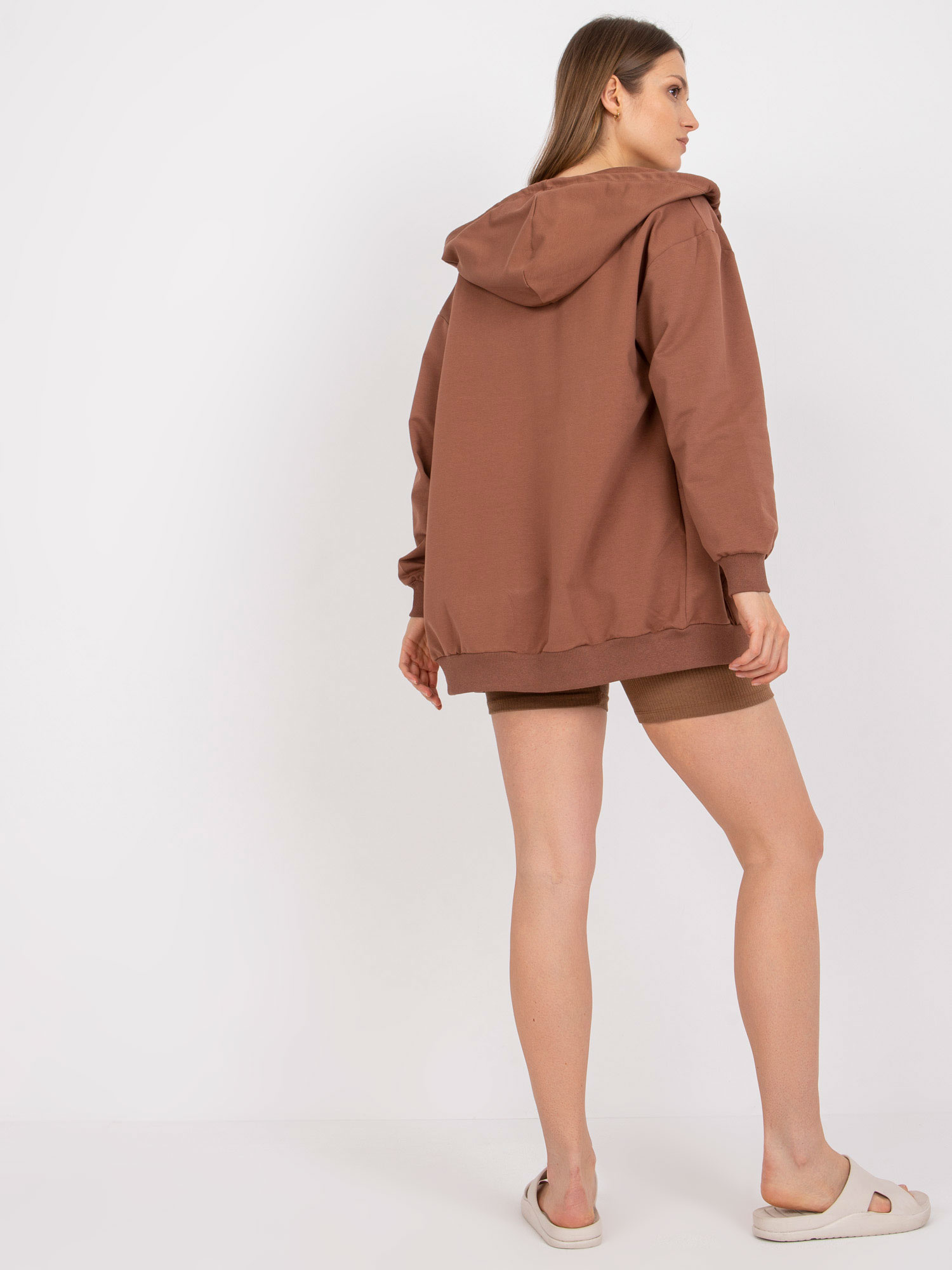 Wymiary kompletu w rozmiarze S/M mierzone na płasko: szerokość bluzy pod pachami – 56 cm, długość bluzy – 72 cm, długość rękawa – 58 cm, szerokość topu pod pachami – 36 cm, długość topu – 43 cm, szerokość szortów w pasie – 35 cm, długość szortów – 40 cm.